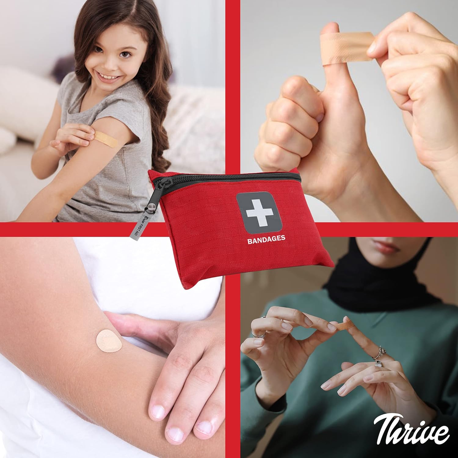 Thrive Bulk Bandages Variety Pack - 305 Count, Red - Travel Fabric & Waterproof Adhesive Bandages & Band Aids with Zipper Pouch