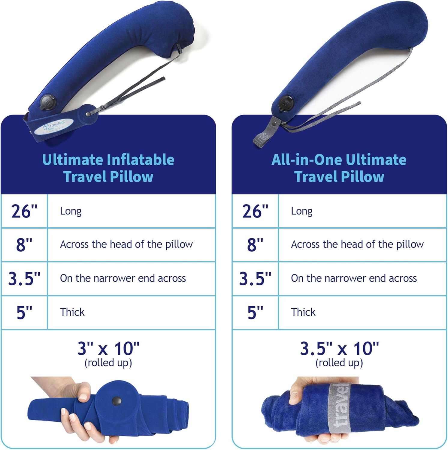 - COMPACT PORTABILITY: Convenience meets comfort with the Travelrest travel pillow. Expertly designed to roll up into a small, easy-to-pack size, it fits effortlessly into your carry-on or backpack. Whether you're jet-setting across the globe or heading on a weekend getaway, this inflatable travel pillow is always ready to deliver exceptional support and relaxation. Perfect for long flights, road trips by car or bus, or any adventure, itās your go-to travel companionācompact, lightweight, and ready to provide the ultimate comfort wherever your journey takes you.