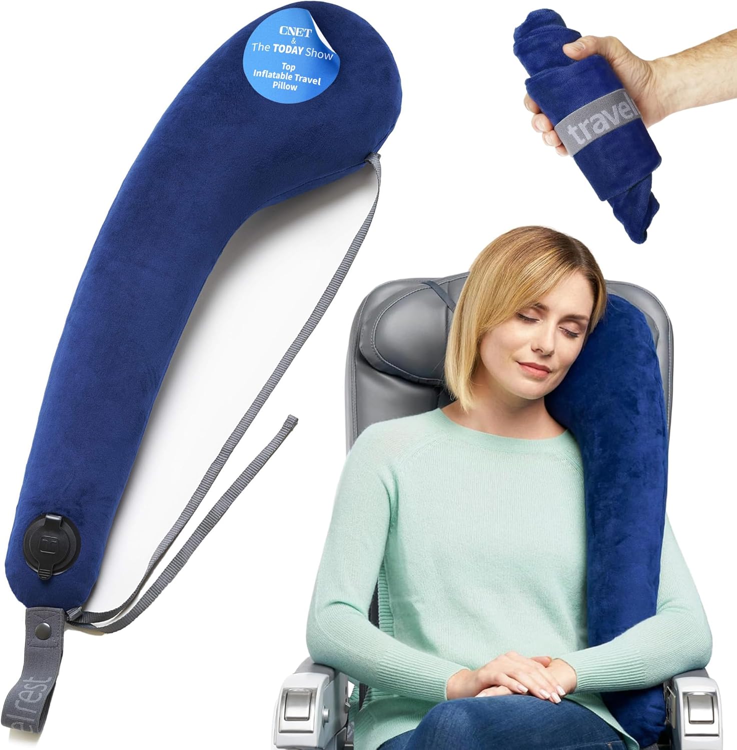 - COMES WITH A WASHABLE COVER: Introducing the All-in-One Travelrest Pillow: A luxurious travel pillow that combines memory foam inserts, a plush velour cover, and versatile design. It inflates effortlessly, attaches to luggage, and comes with a washable cover for added convenience and comfort, even without a seat back. Perfect for any journey!