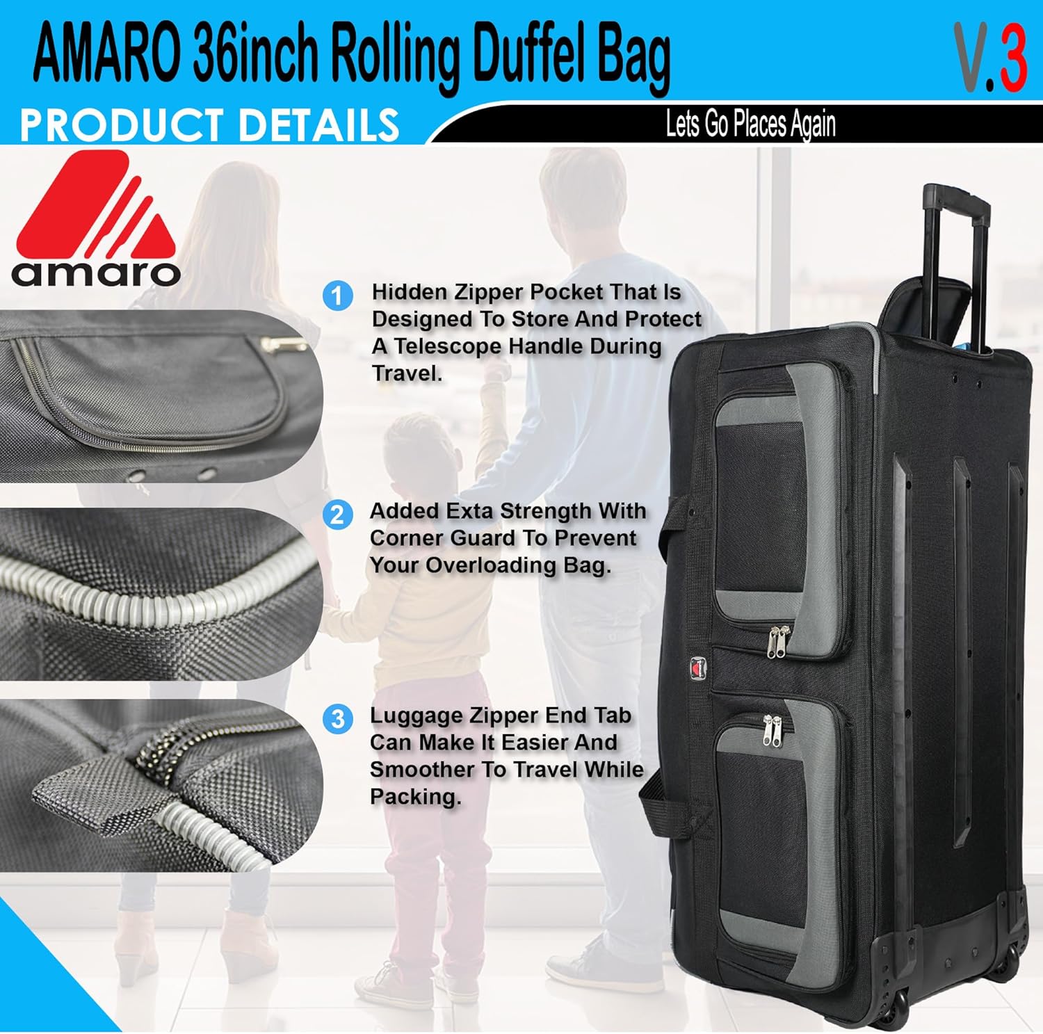 - Versatile Travel Companion: Rolling duffle bag with wheels combines functionality with trend-setting styling. Lightweight design for hassle-free travel experiences.