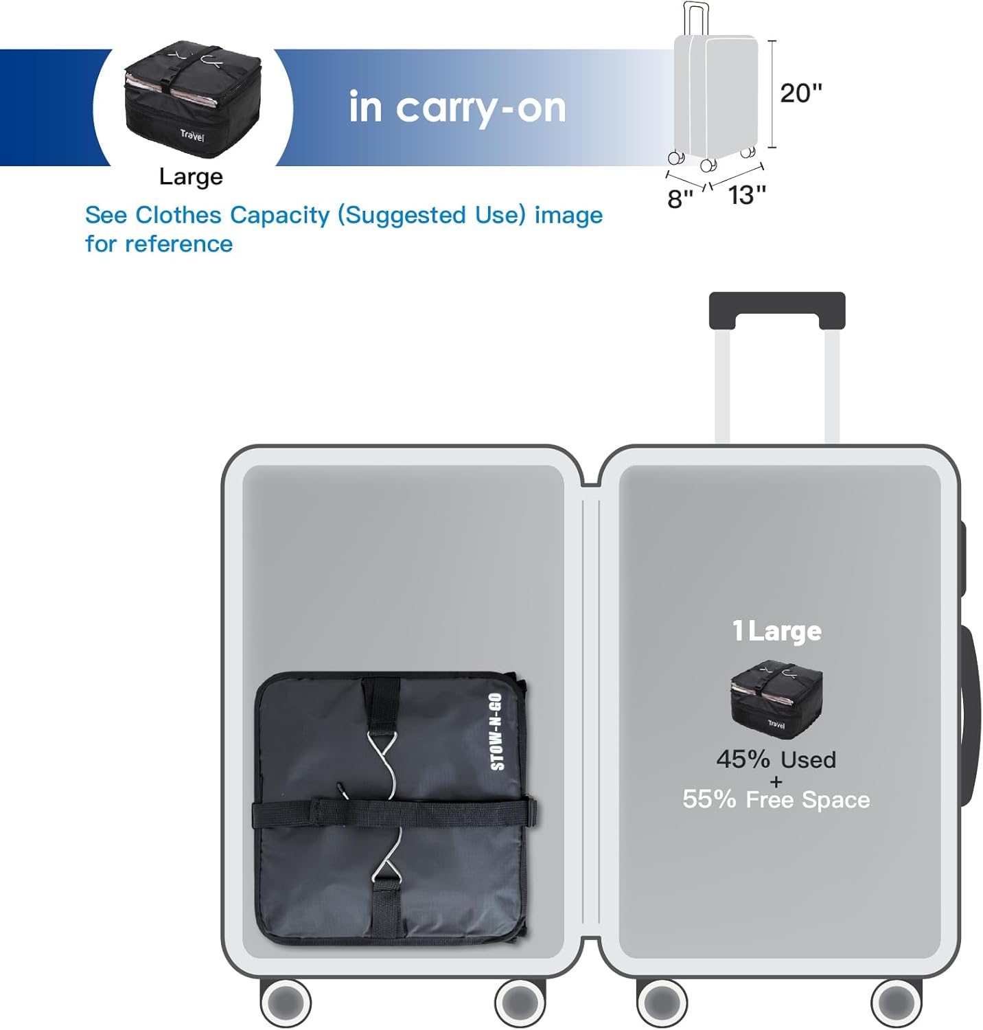 Grand Fusion Stow-N-Go Travel Luggage Organizer – Portable Hanging Travel Shelves, Carry-On Closet Organizer, Hanging Packing Cubes, Collapsible Carry-On Organizer for Cruises & Hotels. Black - L