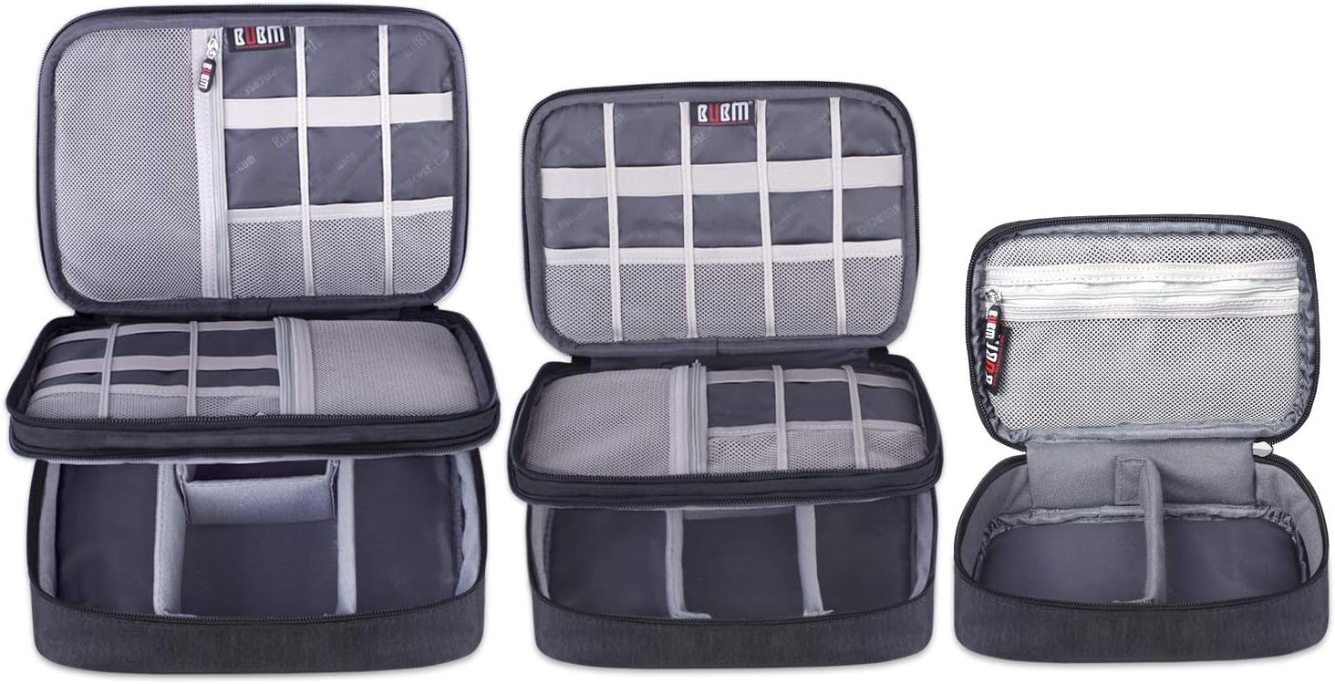 BUBM 3pcs Double Layer Electronic Organizer, Travel Gadgets Bag for Cables, External Flash Drive, Mouse, Memory Card, Power Bank and More, Compact and Multi-purpose, Black