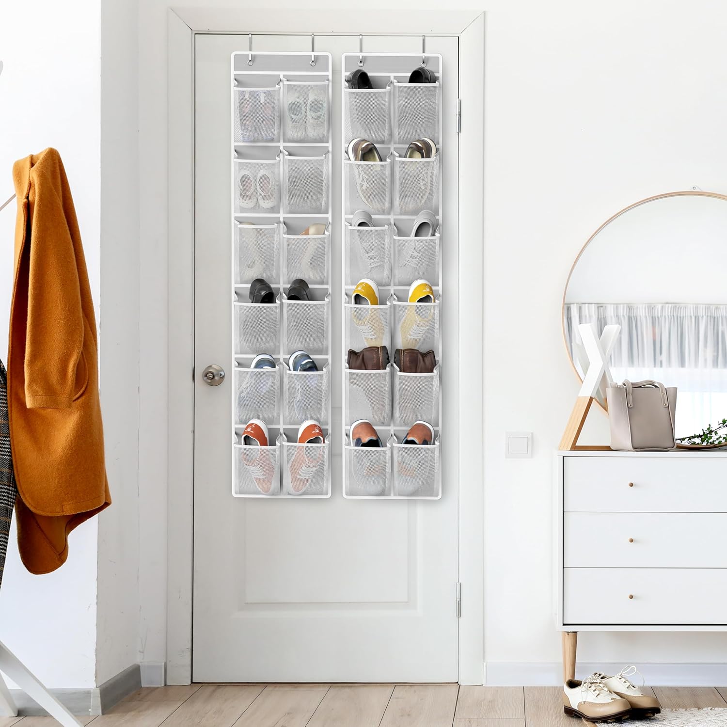 - 2-Pack, 12 Large Pockets: Includes 2 over-the-door organizers, each with 12 large 6" x 8" mesh pockets; ideal for shoes, accessories, cleaning supplies, and more