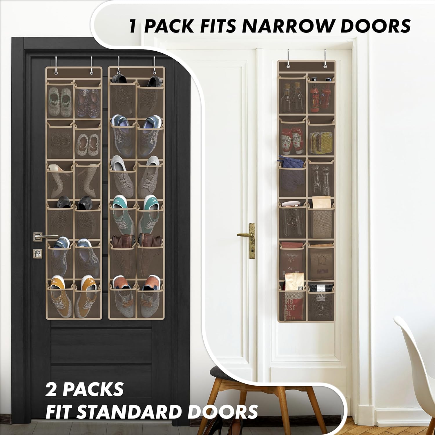 Simple Houseware 24 Pockets - 2-Pack 12 Large Mesh Pocket Over Door Hanging Shoe Organizer, Brown