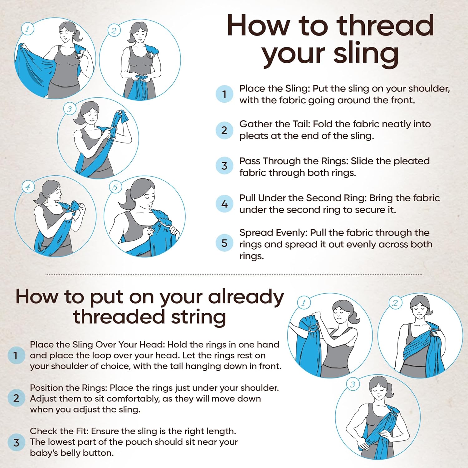 - 100% COTTON & LIGHTWEIGHT: This baby ring sling is made from soft, and 100% cotton fabric, keeping both you and baby cool and comfortable. It's 78 inches long, fits sizes 2-14, and supports babies 8-35 lbs. For a secure fit, follow the threading guide in the images or contact us for assistance.