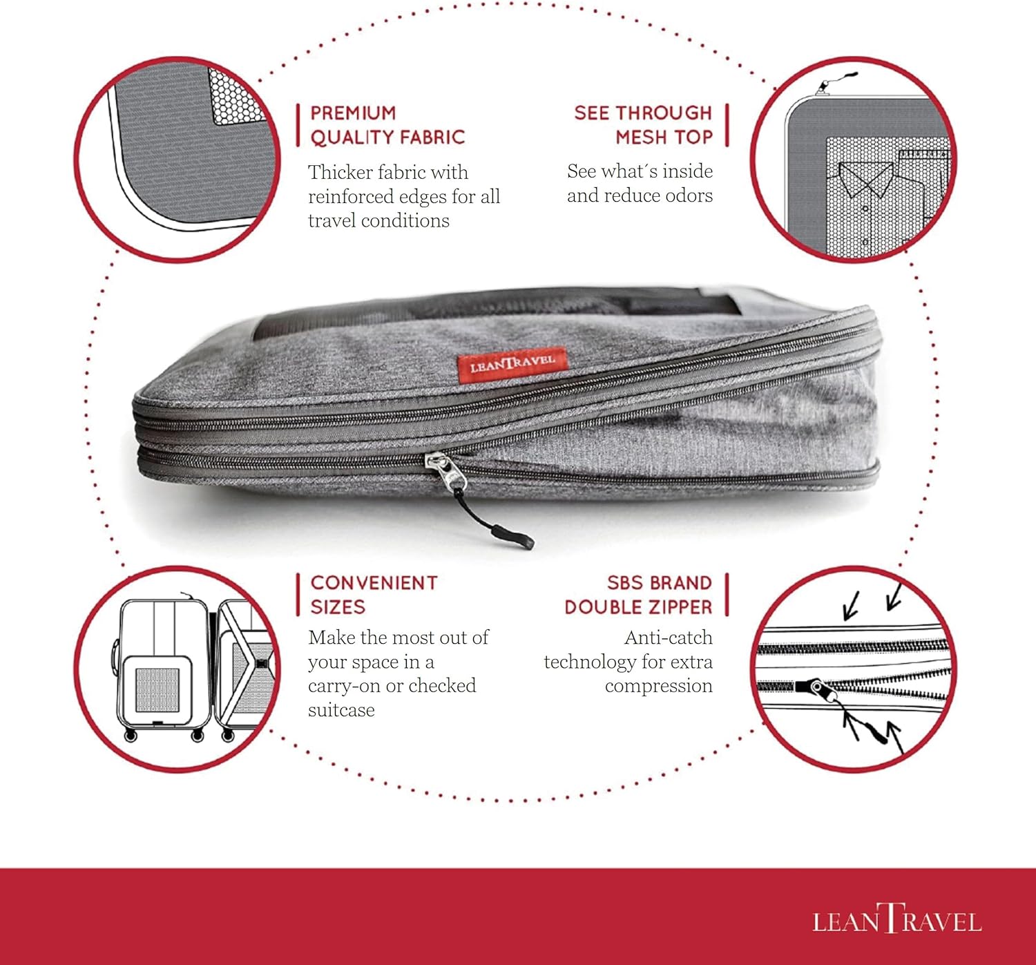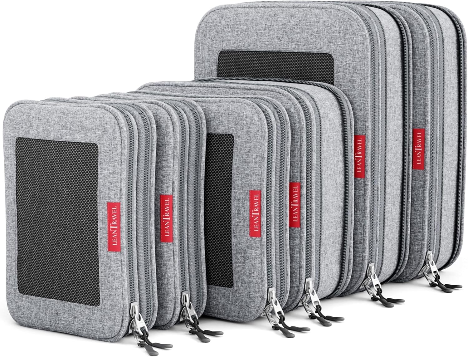 LeanTravel Compression Packing Cubes for Travel Organizers with Double Zipper (6-Pack (2L+2M+2S), Grey)