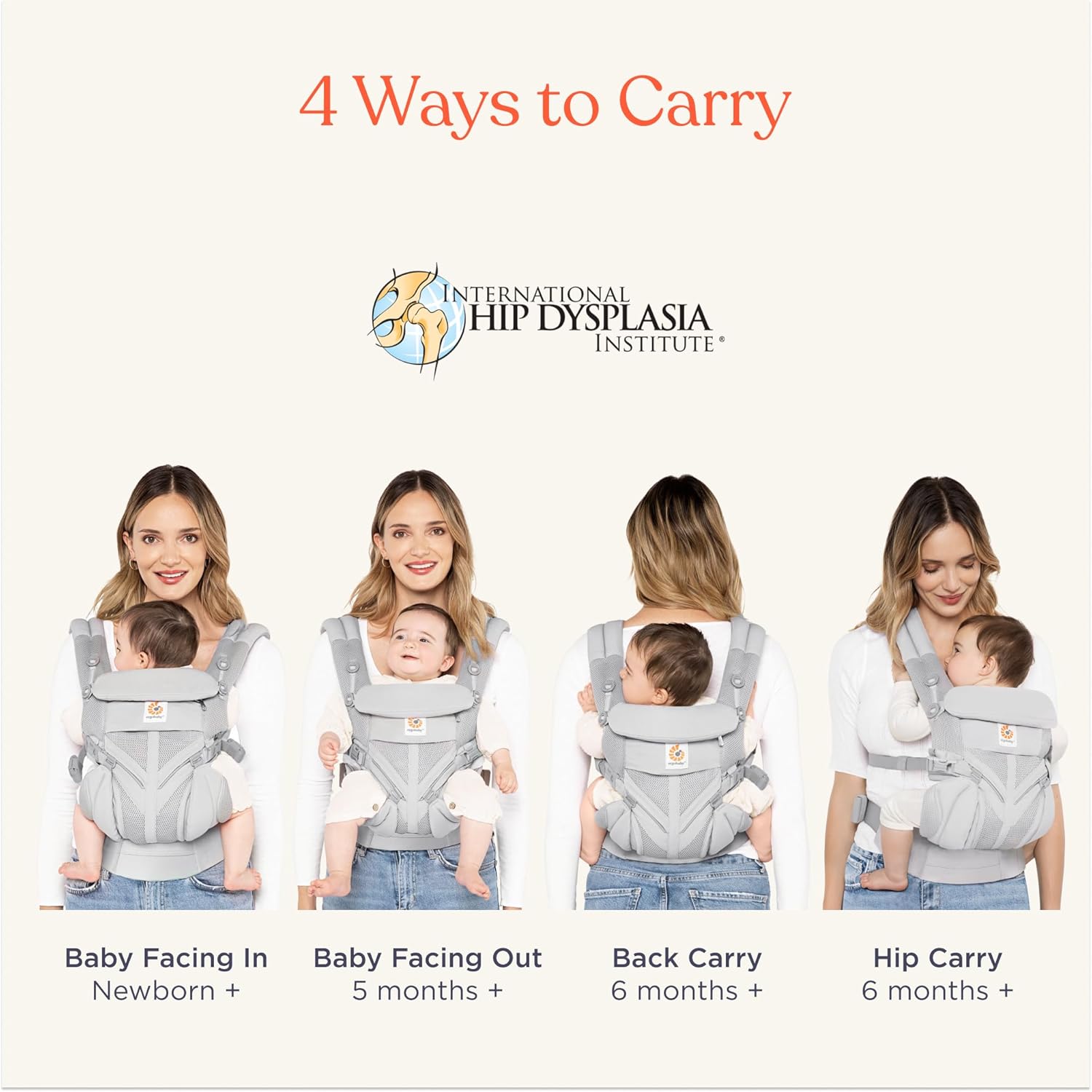Ergobaby Omni Classic Baby Carrier Newborn to Toddler - Breathable Baby Carriers for Summer - All-Position Carrier with Lumbar Support (7-45 Pounds), Mesh, Pearl Grey