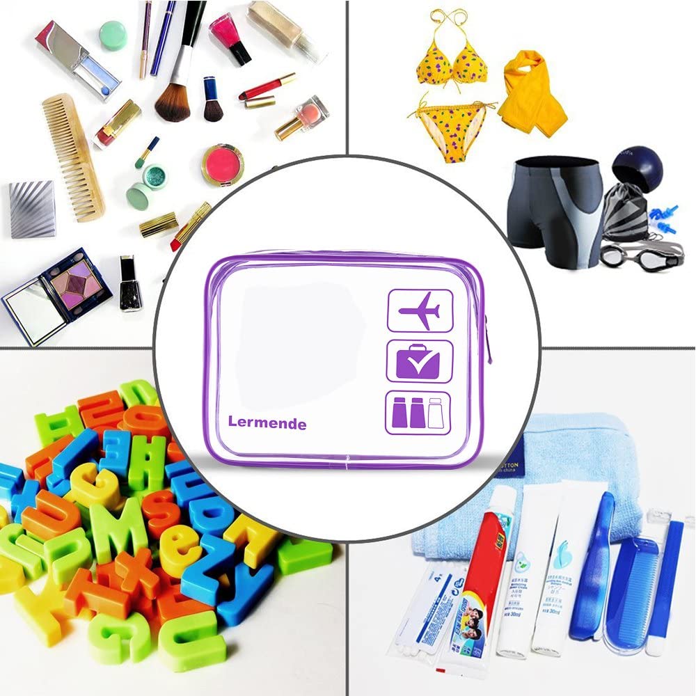 Lermende 2pcs Clear Toiletry Bag TSA Approved Travel Bag,Carry On for Travel,Airport Airline Accessories Compliant Bag,Quart Sized Makeup Cosmetic bag Women Men (Purple, 3 Pack)