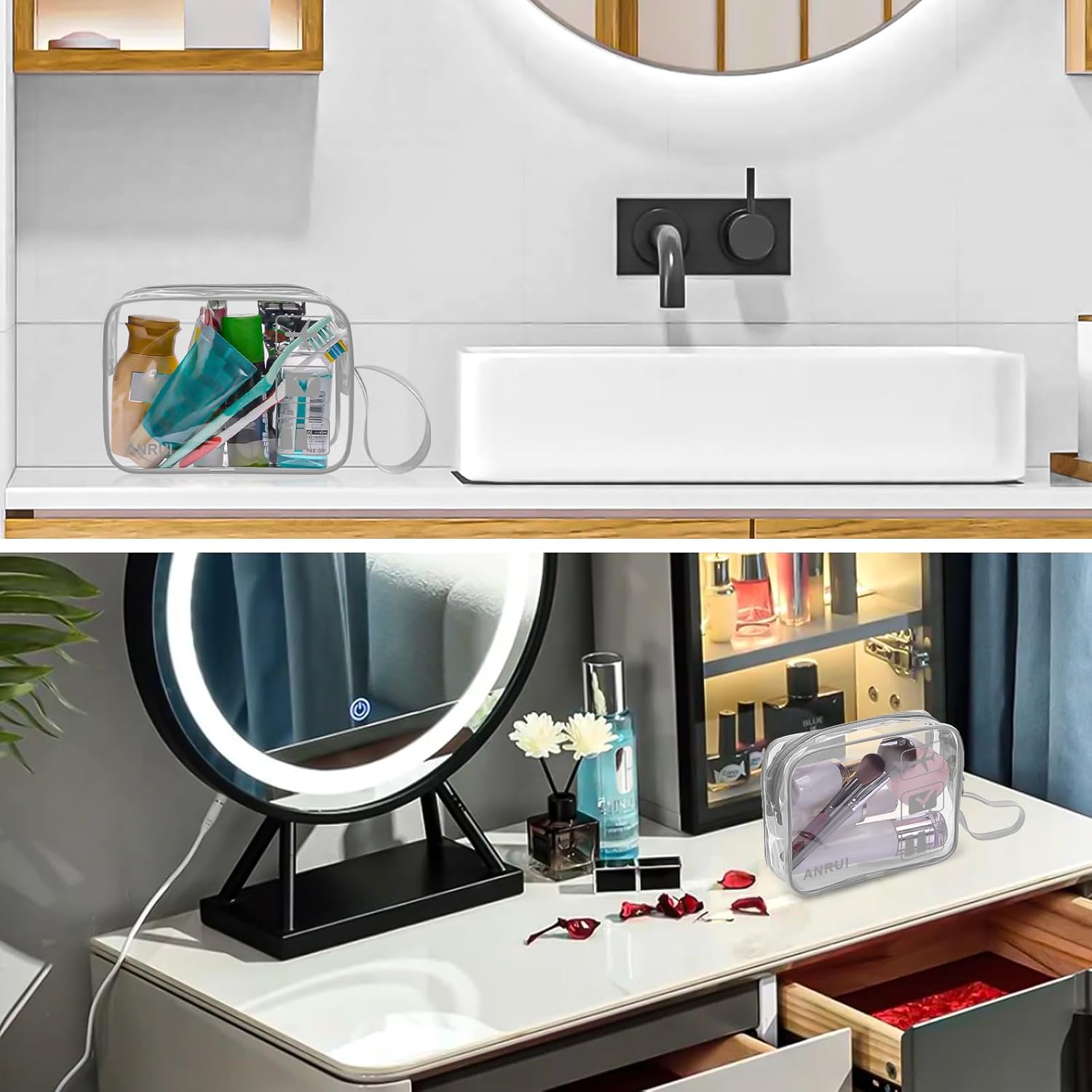 ANRUI Makeup Bags Clear Cosmetic Bag for Women Small Makeup Pouch for Girls/Kids Travel Toiletries Organizer Bags Waterproof Travel Liquids Storage Bags