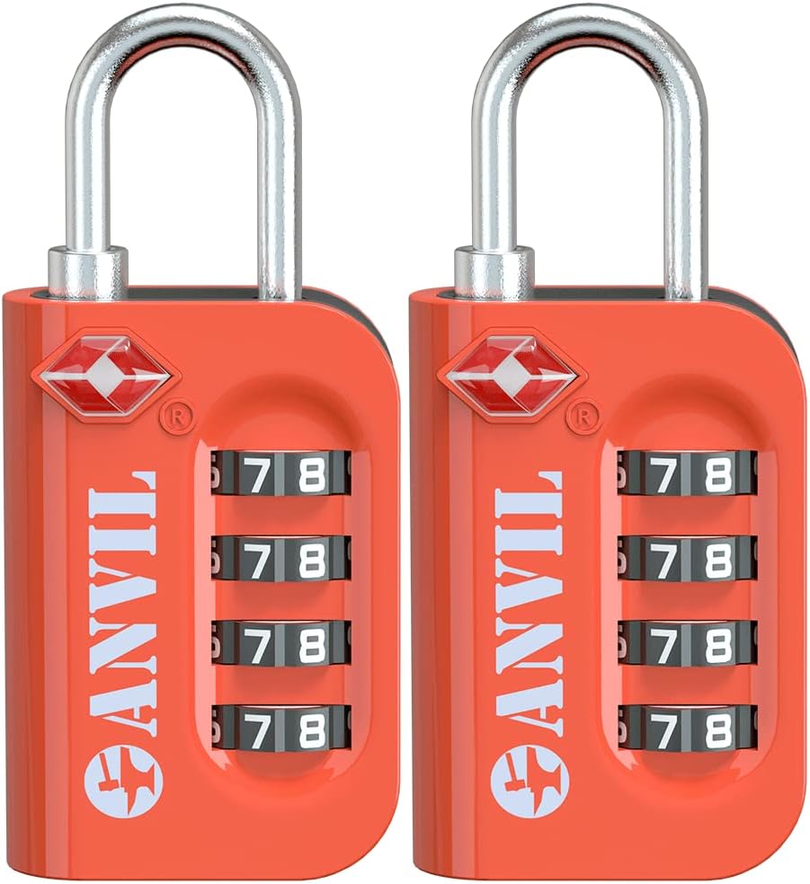 ANVIL TSA Approved Luggage Lock - 4 Digit Combination, 10,000 Combinations, Easy-Read Password Window, Travel Lock for Suitcases, Backpacks, Gym & Student Lockers, Baggage