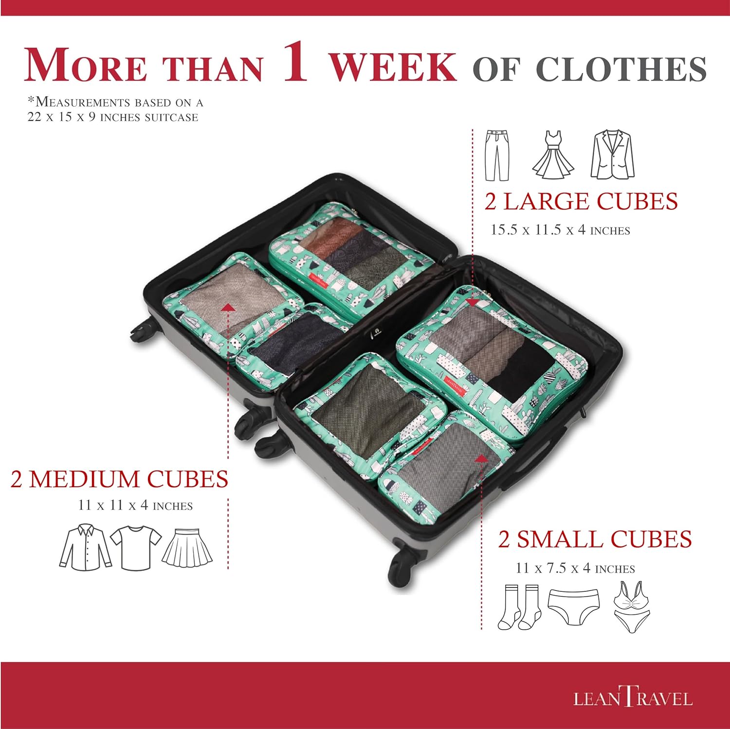 - MORE PACKING CAPACITY compared to other leading compression cubes in the market; Set of 6 pieces includes 2 large cubes for coats or pants, 2 medium cubes for shirts, and 2 small cubes for underwear, socks and other travel gear