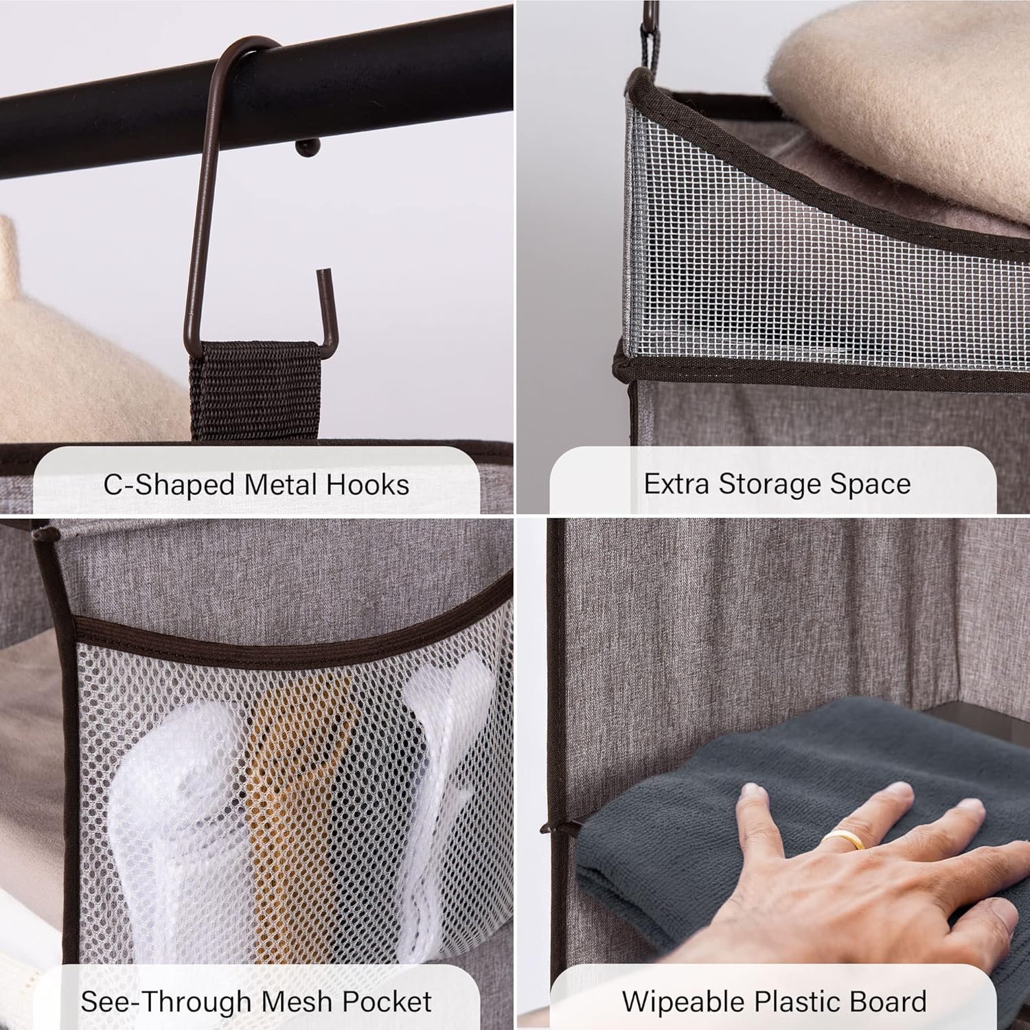 - Hanging closet shelf for versatile storage of sweaters, knitwear, handbags, scarves, shirts, pants, hats, shoes, dorm essentials and more in the closets, trailers, college dorm, or RVs.