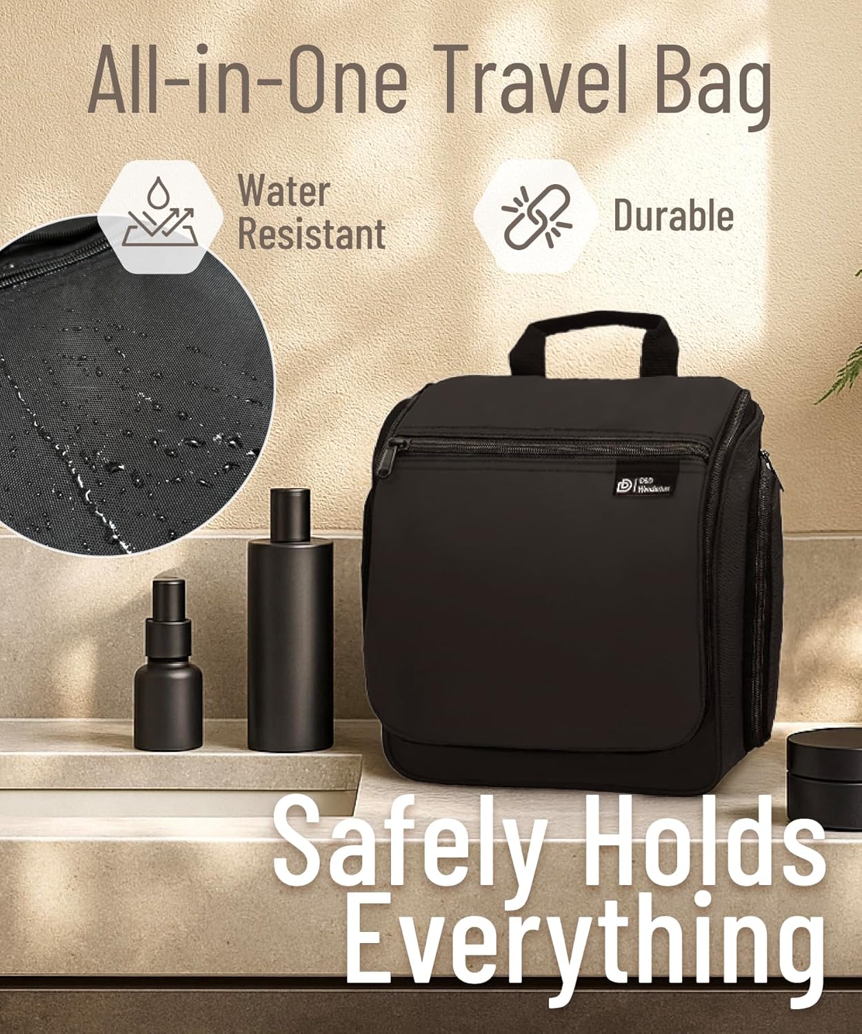 DD D&D Wanderlust D&D Hanging Travel Toiletry Bag for Men and Women – Cosmetics, Makeup and Toiletries Organizer Kit with 10 Compartments, YKK Zippers, XXL Metal Swivel Hook, Water-Resistant Nylon