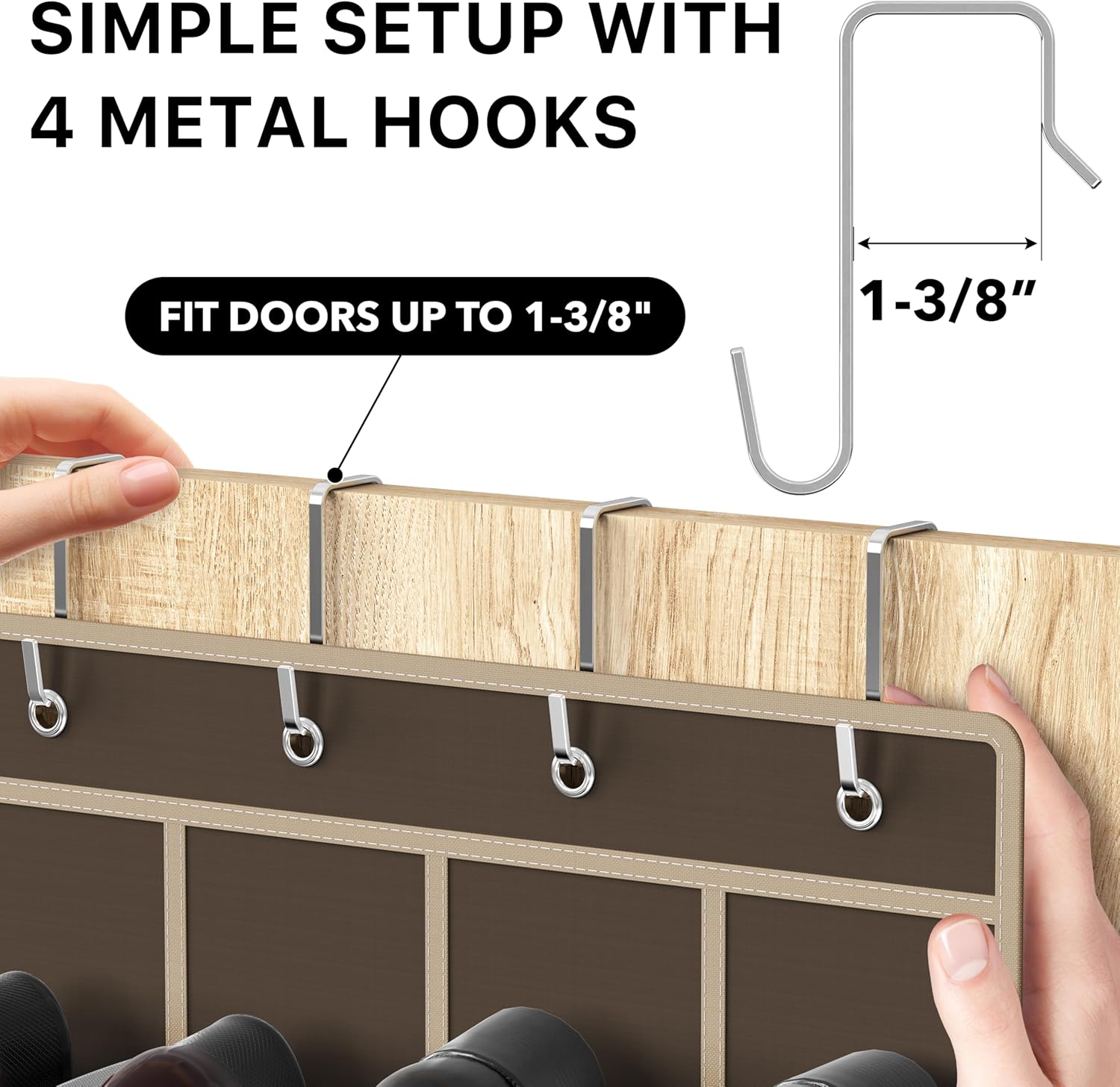 - Includes 4 Durable Metal Hooks: Fits standard doors up to 1-3/8" in thickness; 4-point hanging design provides strong and balanced support