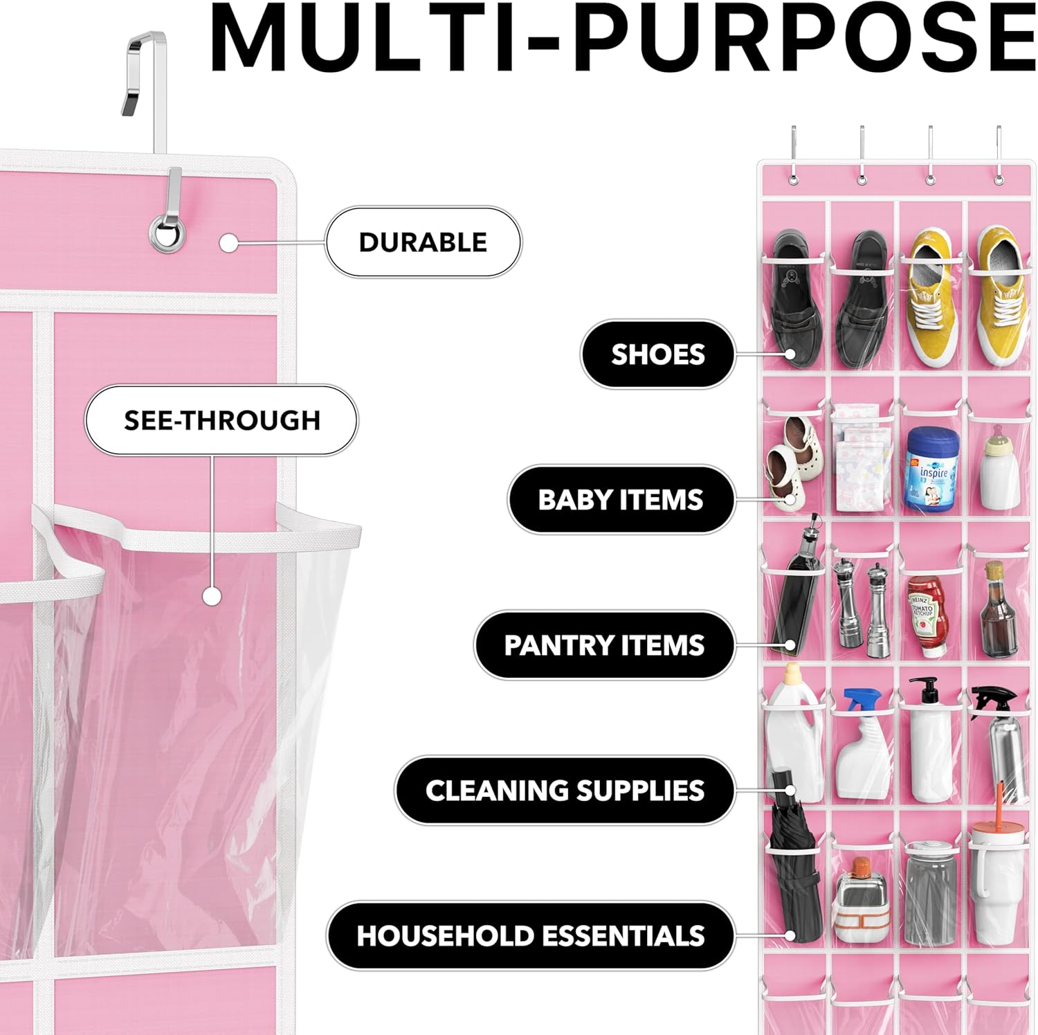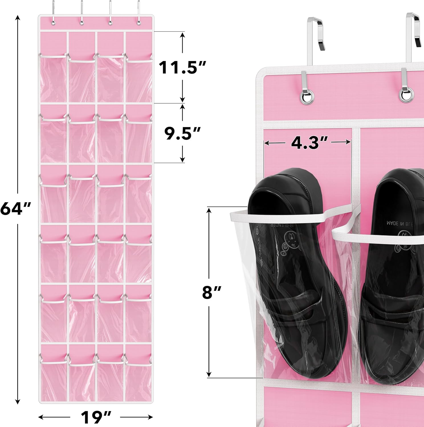 Simple Houseware 24 Pockets - Crystal Clear Over The Door Hanging Shoe Organizer, Pink (64'' x 19'')