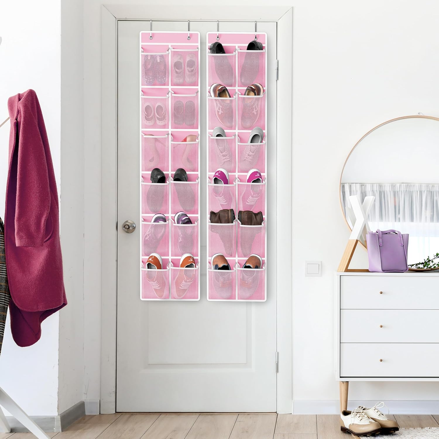 Simple Houseware 24 Pockets - 2PK 12 Large Pockets Over Door Hanging Shoe Organizer, Pink