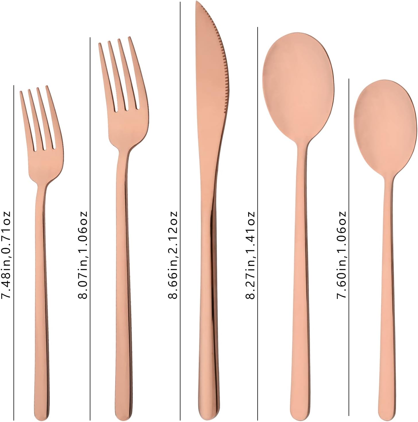 - Premium Quality: Exquisite in both craftsmanship and material. These plated flatware set, constructed by high quality food grade stainless steel, which is healthy and durable for daily use, is finely made, all edges and every detail parts delicately matte and handled. Touch smooth and decent no matter the spoon on your lips or the handle in your hands.