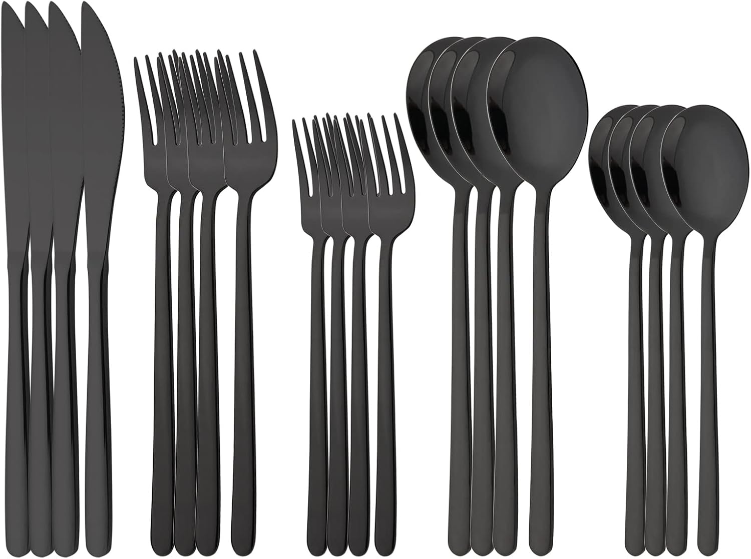 20 Pieces Silverware Set 304 Stainless Steel, Healthy & Eco-Friendly Silver Travel Mirror Polished Black Knife Fork Spoon Salad Fork Dessert Spoon Flatware Set, Service for 4