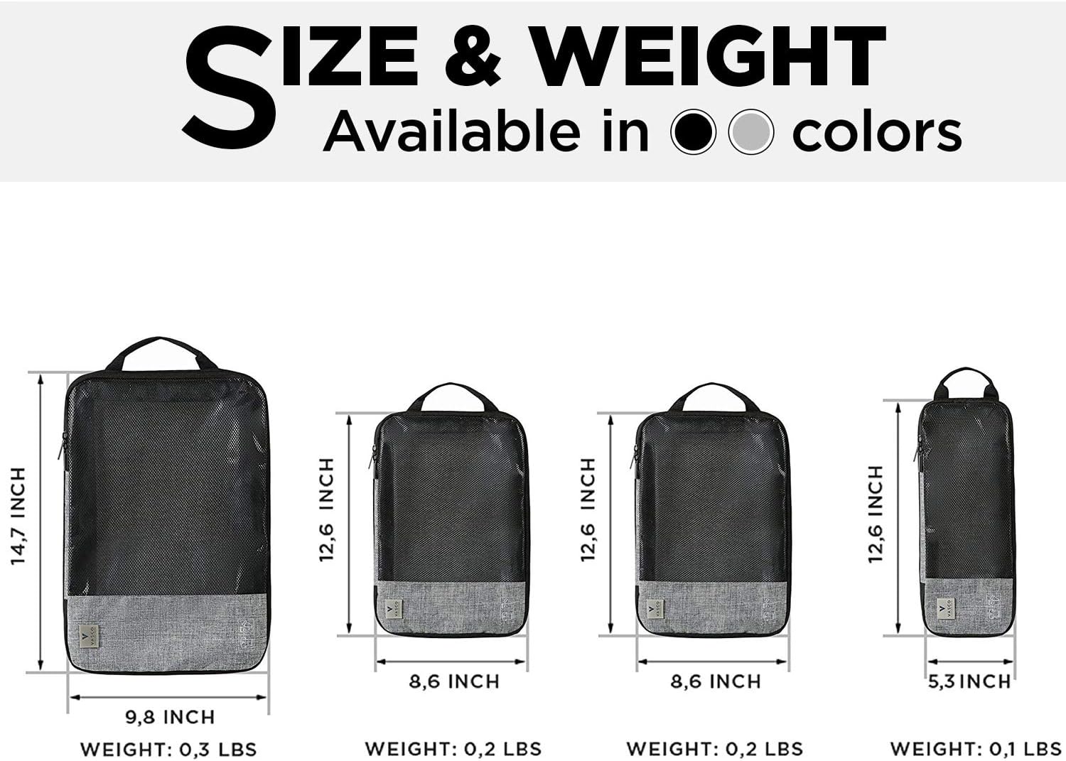 - EASY TO USE DESIGN – Our luggage organizer set comprises of slim pack cubes with integrated handles that make it easy to handle & move around each cube individually, see-through mesh to easily Identify the contents of each cube, and opaque areas that help have privacy for your intimates. Moreover, our packing cubes (compression) prove easy to clean and remain new like even after several washes.