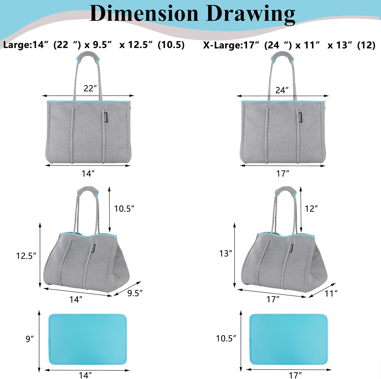 • LARGE, VERSATILE AND MULTIFUNCTIONAL: Are you still worrying about too many essentials you can’t carry with you? With the big storage capacities and convenient size, this bag will be a good helper and can accommodate as many summer essentials as you can. The X-Large bag measures 17”Lx13”Hx11”W inch with 2 inner zipper pockets (16"Lx9”H), it will satisfy most of your requirement.
