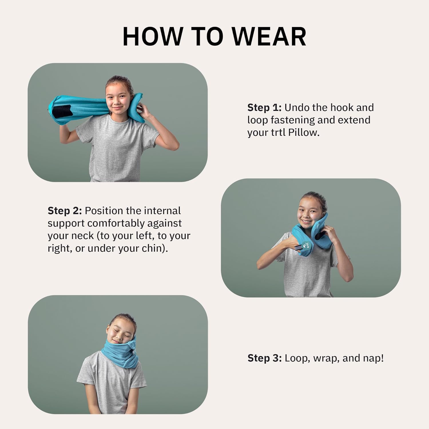 - Easy To Carry & Machine-Washable: Unlike regular U-shaped traveling pillows constructed with memory foam, Trtl Pillows are conveniently machine-washable and fast-drying, so you can keep them fresh for your next adventure. Simply remove the internal support and pop the wrap into the washing machine.