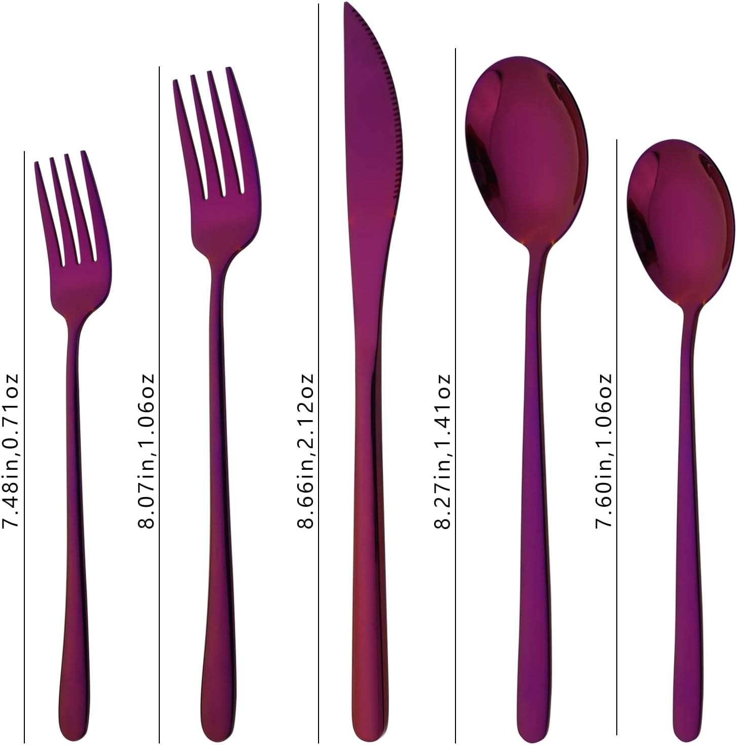 20 Pieces Silverware Set 304 Stainless Steel, Healthy & Eco-Friendly Silver Travel Mirror Polished Purple Knife Fork Spoon Salad Fork Dessert Spoon Flatware Set, Service for 4