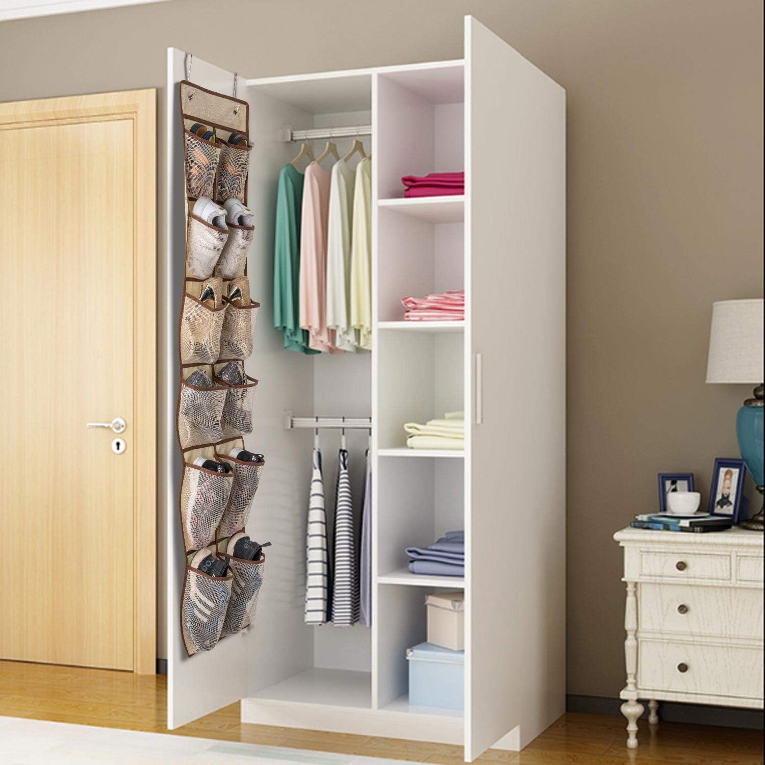 - 🌷【100G LASTING NON-WOVEN MATERIAL WITH NYLON MESH POCKET】This over door shoe rack is made of lasting 100g non-woven fabric with nylon mesh pocket. 100g non- woven is more serviceable and mesh pocket is breathable, smelless and the shoe organizer can be used even longer than others.
