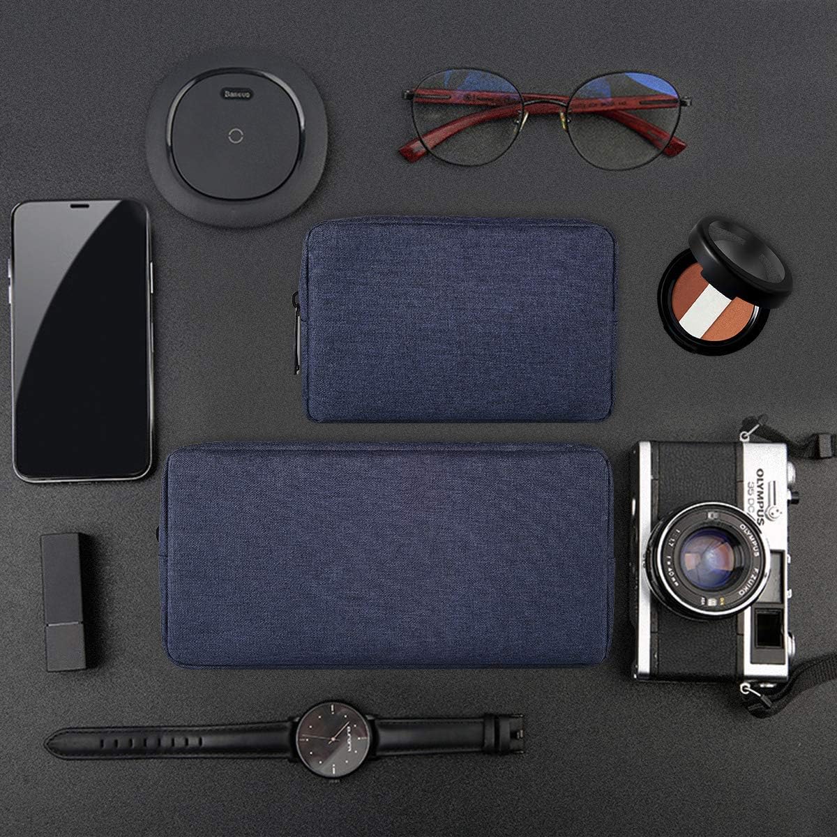 2-Pack Portable Storage Pouch Bag, Universal Electronics Accessories Case Cable Organizer Compatible with Hard Drive, Laptop Mouse, Power Bank, Adapter, Cellphone, Cosmetics (Small+Big-Navy Blue)