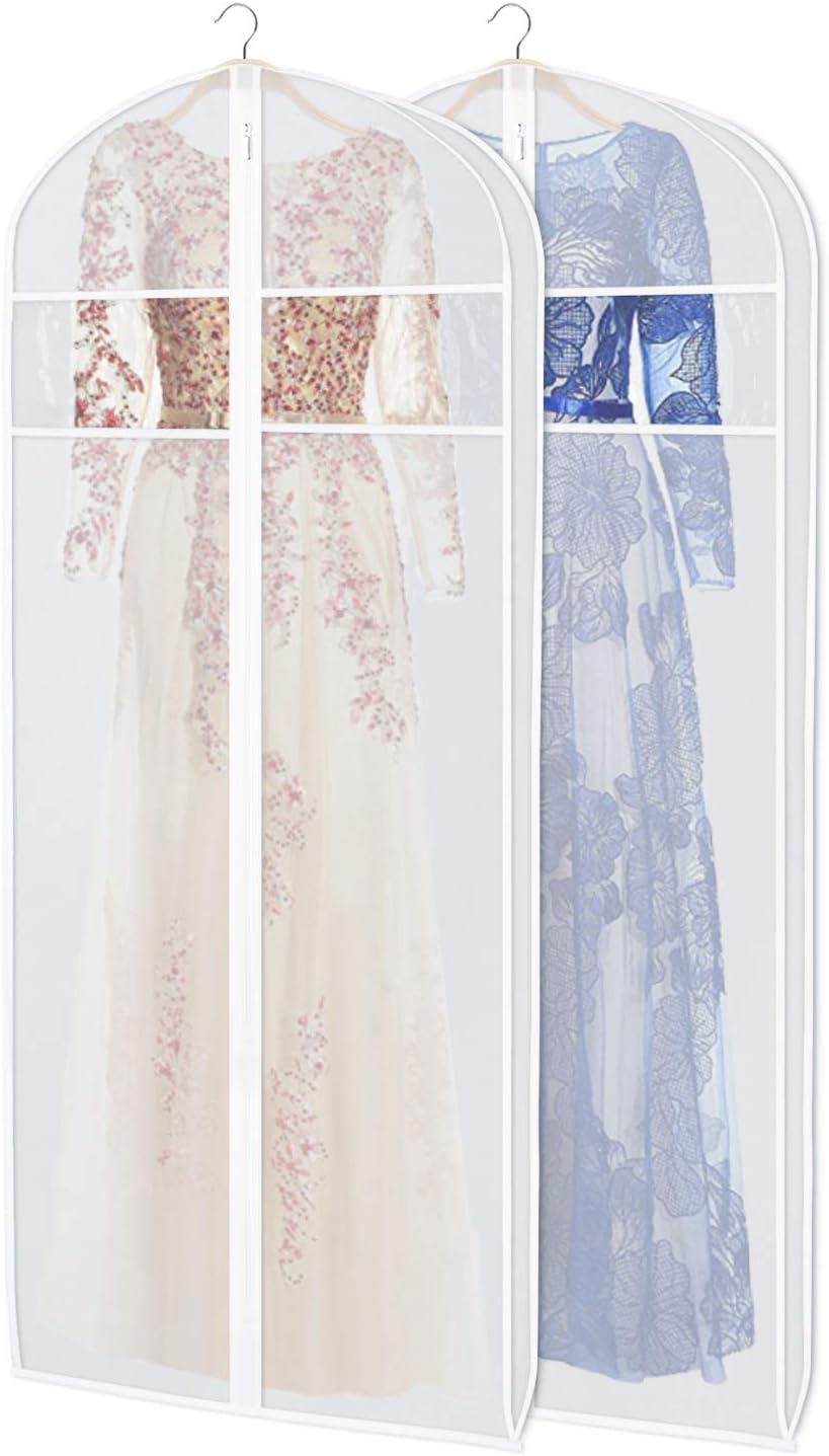 - 【3” Gusset and washable 】Evening gown garment bag with 3” gusset for 1-3 clothes with no squeeze and wrinkle, even for litter puffy / maxi dresses and wedding gowns,each of your suits,dresses and gown can have their own cover and room to breathe; we added PVC opening on top of the bag, keep your favorite clothes fresh.