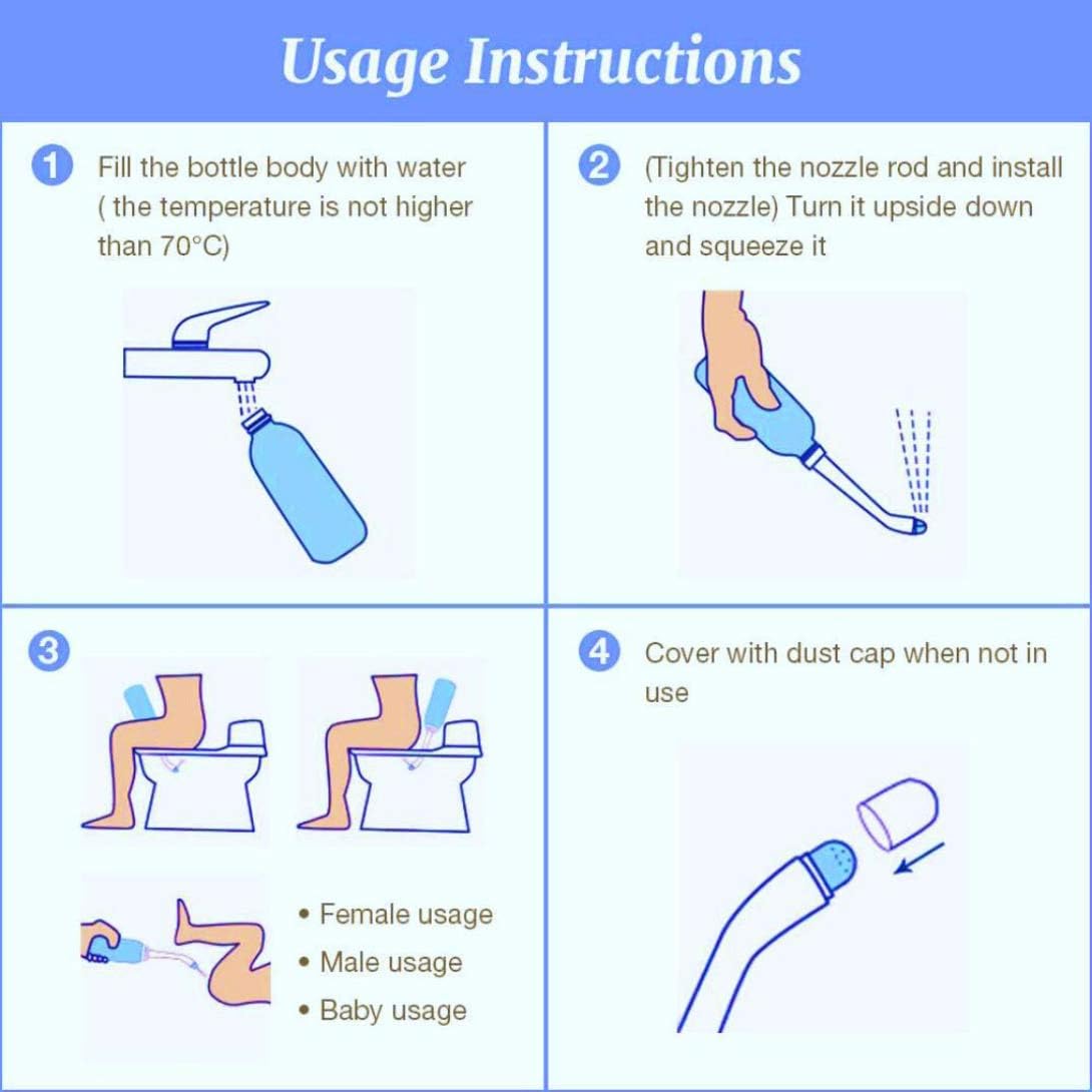 - 【2PCS-PACK-500ML Blue】 - For Home and Travel Use, the easy way to refresh yourself after bath or toilet use, handheld size and easy to carry, the portable bidet bottle is perfect for personal clean at home, office, on vacation, travel,puerpera and more..