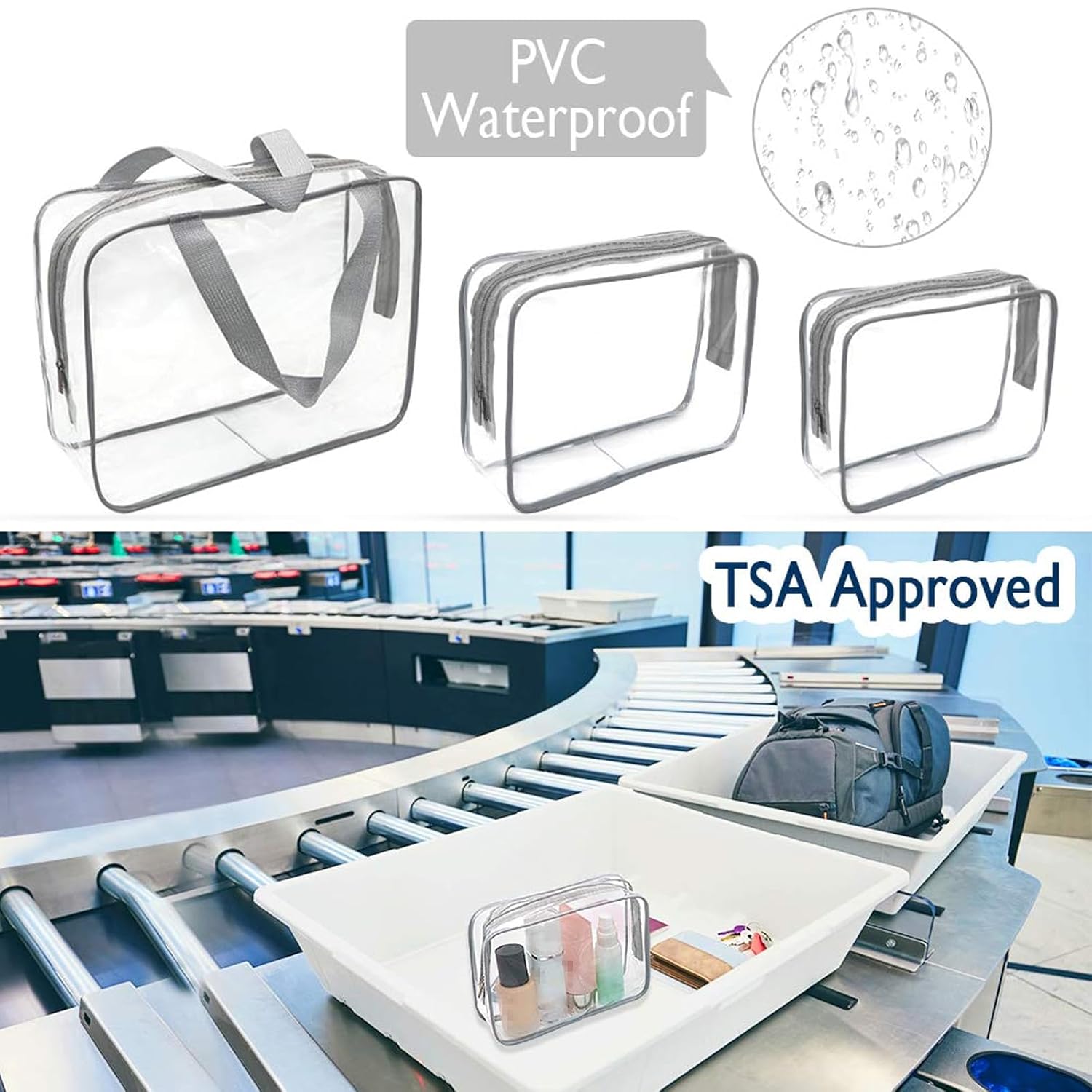 - TSA APPROVED: TSA approved clear travel bag strictly follow 3-1-1 regulations, you won't have to worry pass through airport security. Bags made of transparent PVC material, BPA free. Thickness makes the bag more enduring and easy to clean