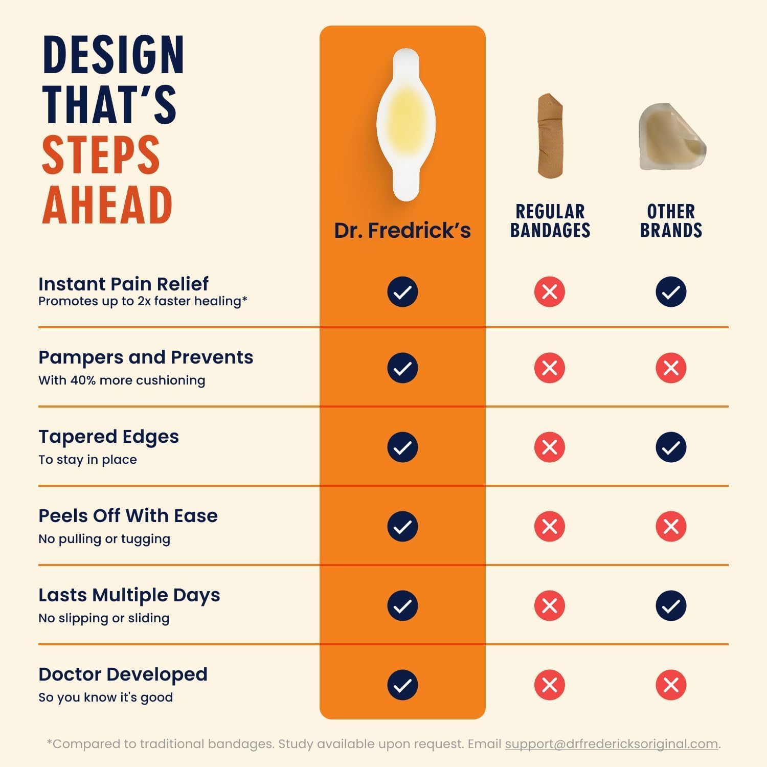 - A Commitment To Your Satisfaction: At Dr. Frederick's Original, we prioritize your satisfaction, which means creating the best possible products for you. We stand behind Better Blister Bandages with our industry-leading pledge. If our product doesn't help you get back to doing what you love, we're dedicated to finding a satisfactory solution.