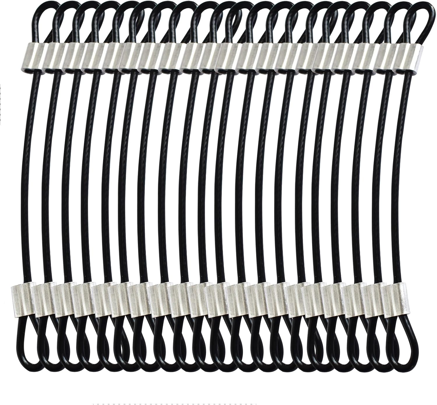20 pcs 6 inch (15cm) 3mm Thickness Stainless Steel Wire Cable with Loops Vinyl Cover Coated Short Rope Lanyard Lock Safety Tether Chains, Black