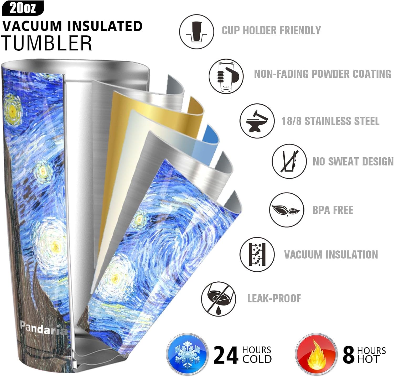 - The star sky and the village under the moonlight show incredible fancy of painter Vincent van Gogh. With Pandaria print coating, Starry Night stays vivid on tumbler. Take it and enjoy your favorite drinks!