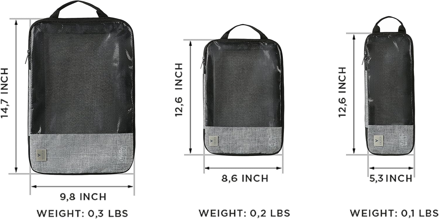 • SMART TRAVEL PACKING – Organize your belongings within a suitcase or backpack for a tidy storage, instantly fetch what’s needed without having to fish around the entire bag, and repack easily to keep the bag clutter-free until you return home – our travel cubes come in a set of 3 thoughtfully sized packing cubes, and allow you to easily group & separate your clothing within a single bag. Separate your bottoms, tops & inner-wear or accessories separately, or plan it your own way.