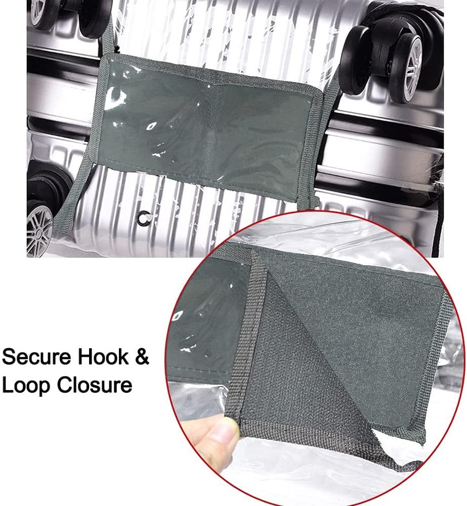 - LUGGAGE COVER PROTECTOR;Fully transparent luggage protector with large Hook and Loop Closure for a better fit of your luggage.
