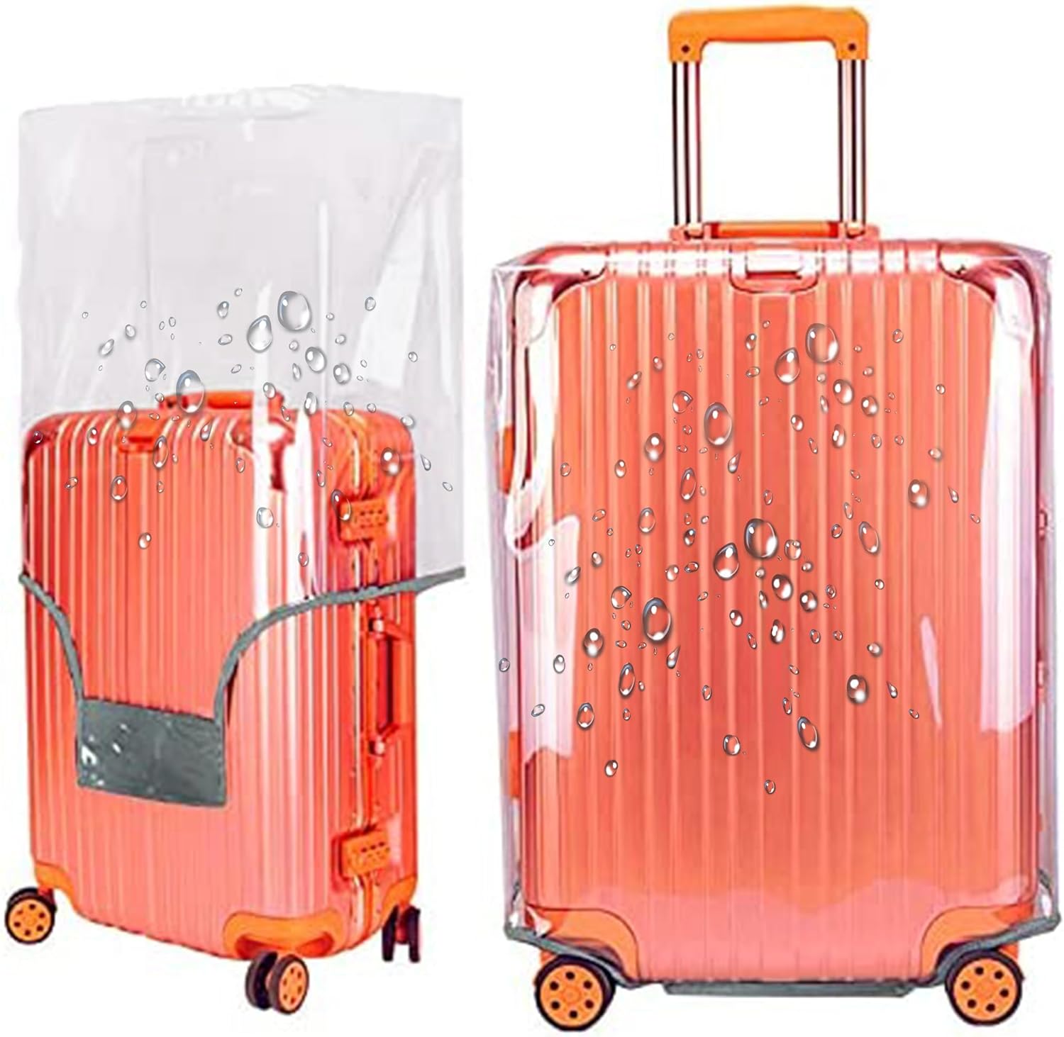 - SUITCASE COVER MATERIAL:Made from heavy-duty PVC material , our transparent luggage cover provides full protection for your beloved suitcase. Keep your luggage away from scratched, stained, messy or ruined.