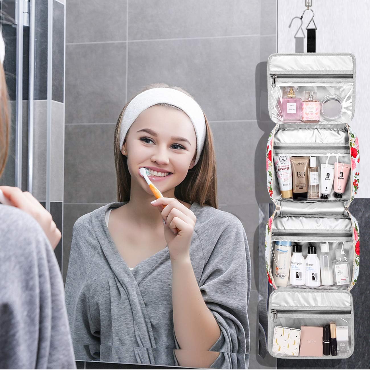 Hanging Travel Toiletry Bag,Large Capacity Cosmetic Travel Toiletry Organizer for Women with 4 Compartments & 1 Sturdy Hook,Perfect for Travel/Daily Use/Christmas