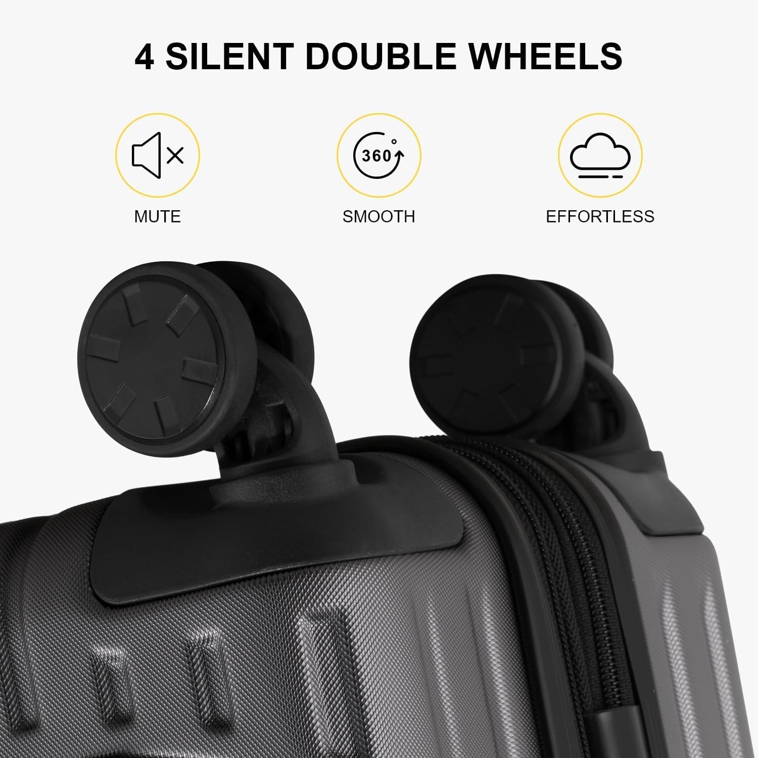 LEVEL8 Grace Carry on Luggage 22x14x9 Airline Approved, 20 Inch Hard Shell Suitcases with Spinner Wheels, Abs+Pc Hard Case Luggages with Tsa Lock, Travel bag for Women Men, Grey