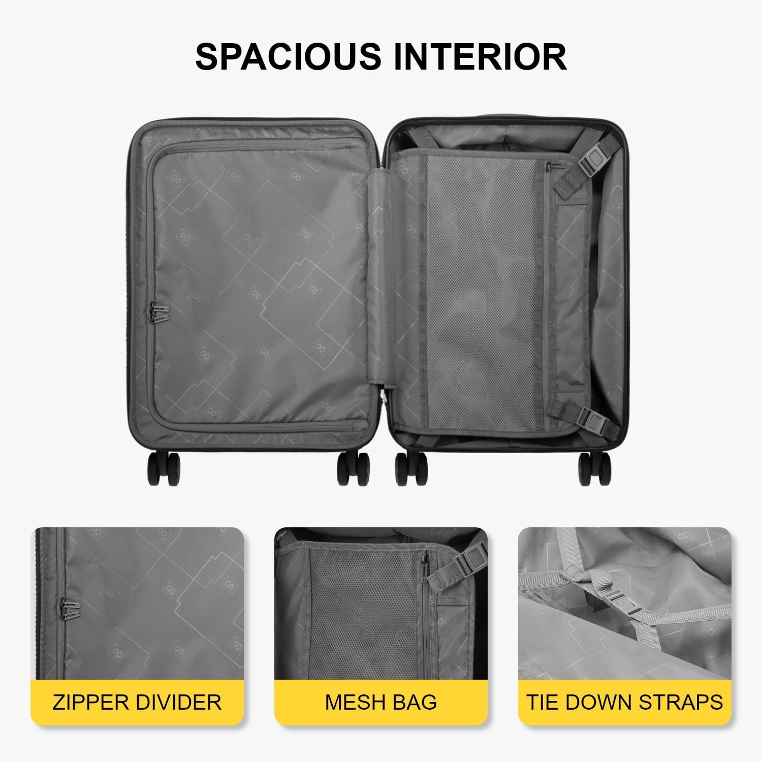LEVEL8 Grace Hard Shell Carry on Luggage with Front Compartment, 20 Inch Expandable Suitcases with Wheels, Lightweight Carry-on Suitcase for Airplane, Tsa Lock, Black
