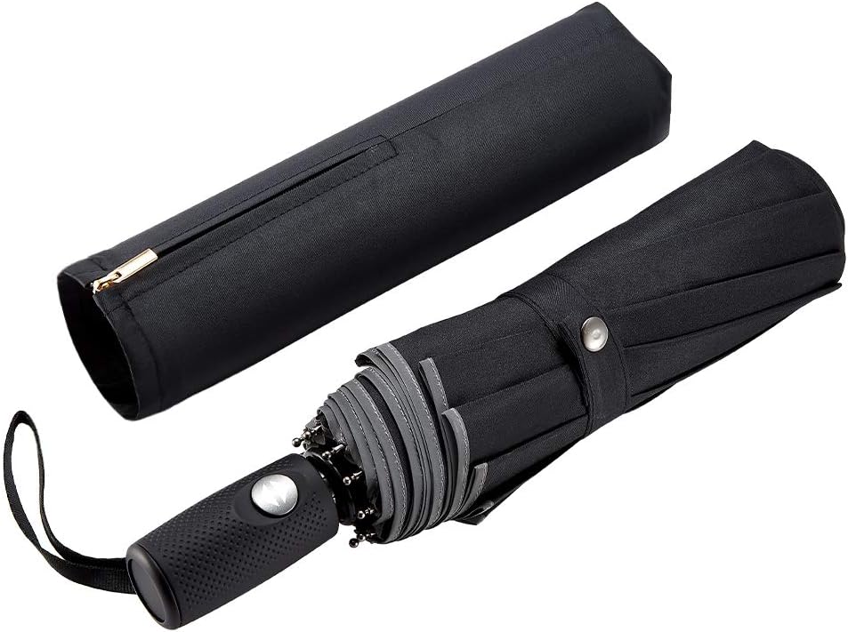 FDJASGY Windproof Travel Umbrella with Teflon Coating Auto Open Close Lightweight Sun&Rain Umbrella with 10 Rib Construction and Reflective Stripe Zipper Pouch