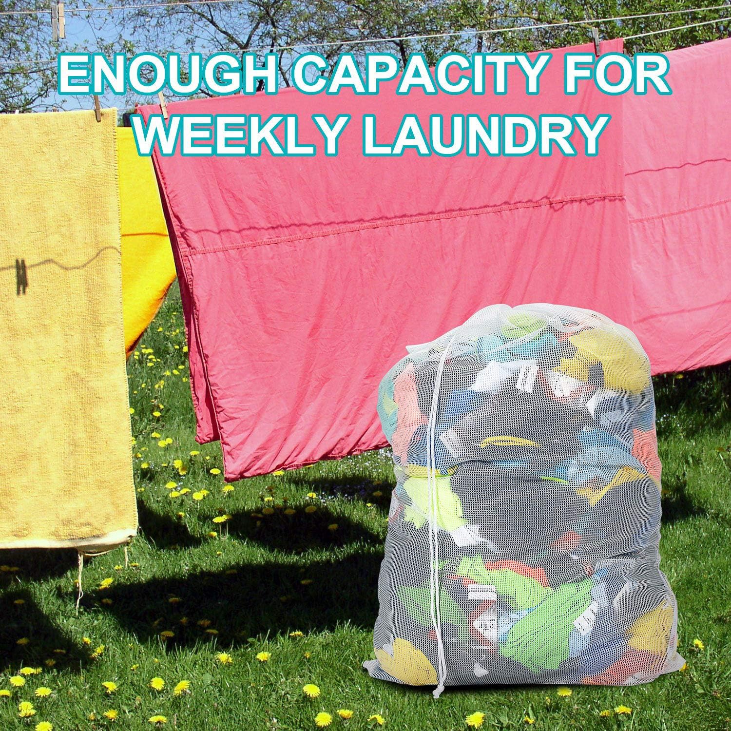 - Drawstring Closure & Well-Stitched Handle: Drawstring closure mesh laundry bags make sure that nothing lost on the road to the laundry room. When using it as a laundry liner bag, you can also tighten the drawstring closure to secure it to the laundry hamper. Attached reinforced-stitching fabric handle saves labor and makes the transportation easier. It can also save your space by hanging on the door knobs to collect dirty clothes.