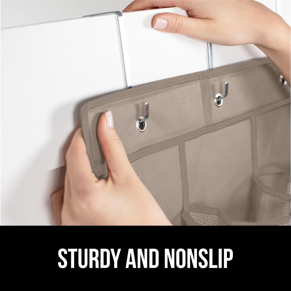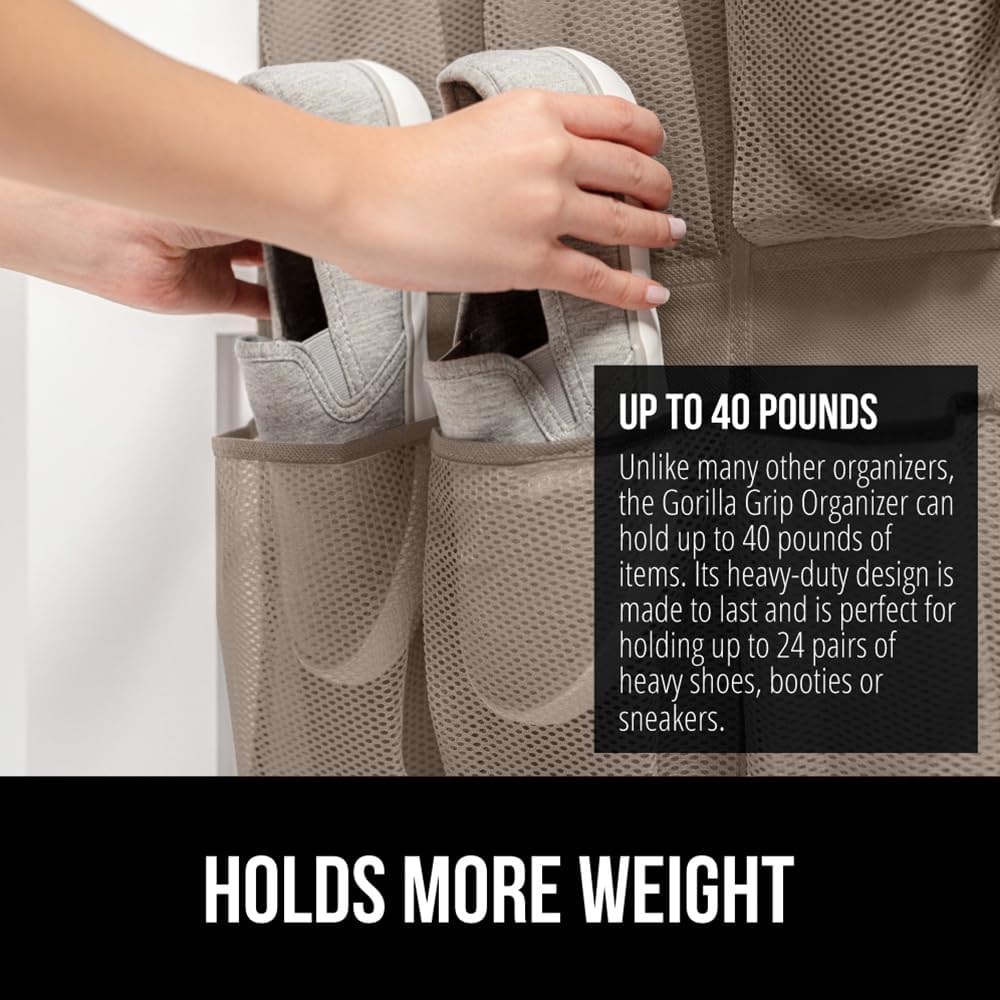 GORILLA GRIP Over the Door Shoe Organizer, 24 Large Breathable Mesh Pockets, Space Saving Hanging Storage Holder, Closet Rack Hanger Holds Up to 40 lbs, Hangs on Closets for Shoes, Accessories, Beige