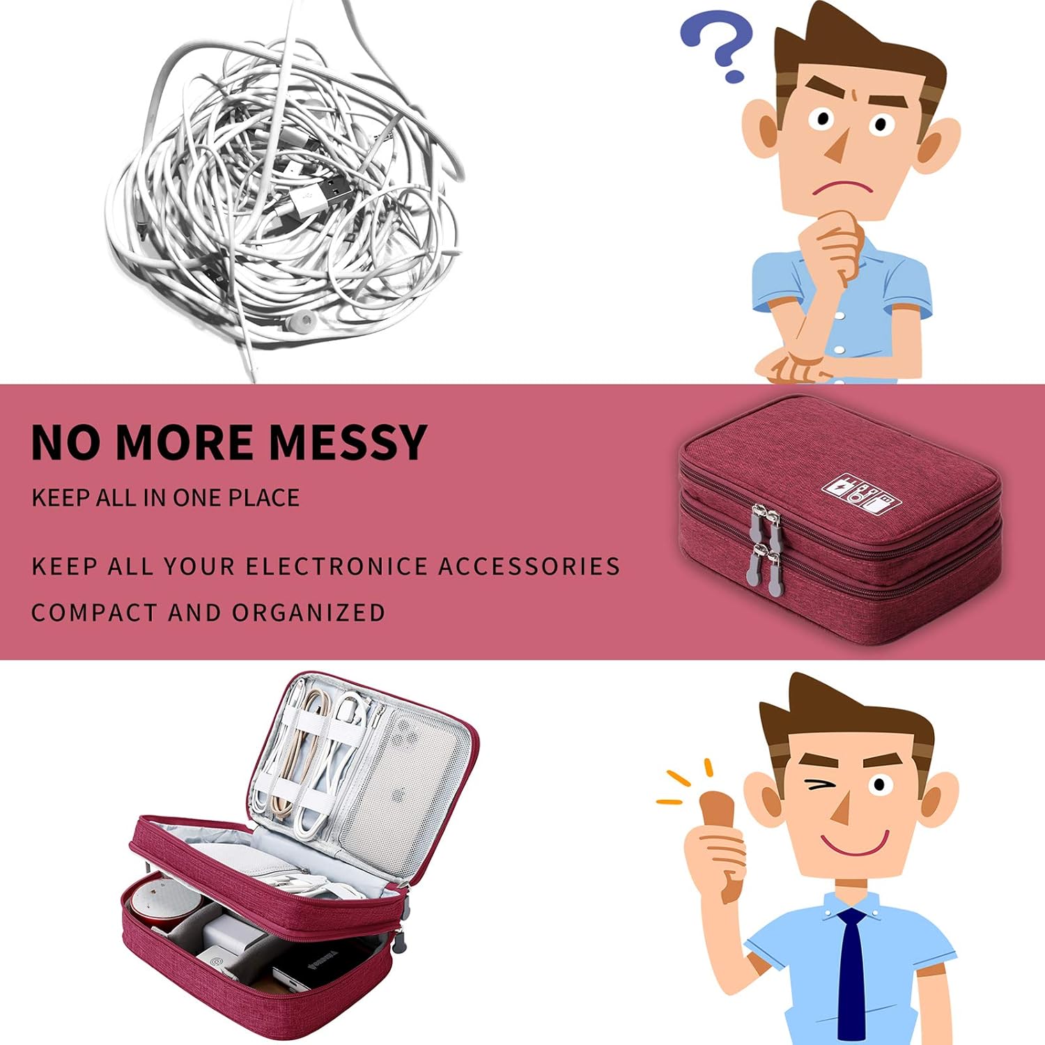 mygreen Travel Cable Organizer Bag, Two-Layer Electronics Accessories Organizer Bag for Cables, Chargers, Power Bank, Mouse,iPad, Phone, Kindle, SD Card, Wires, Cords, and Accessories Red