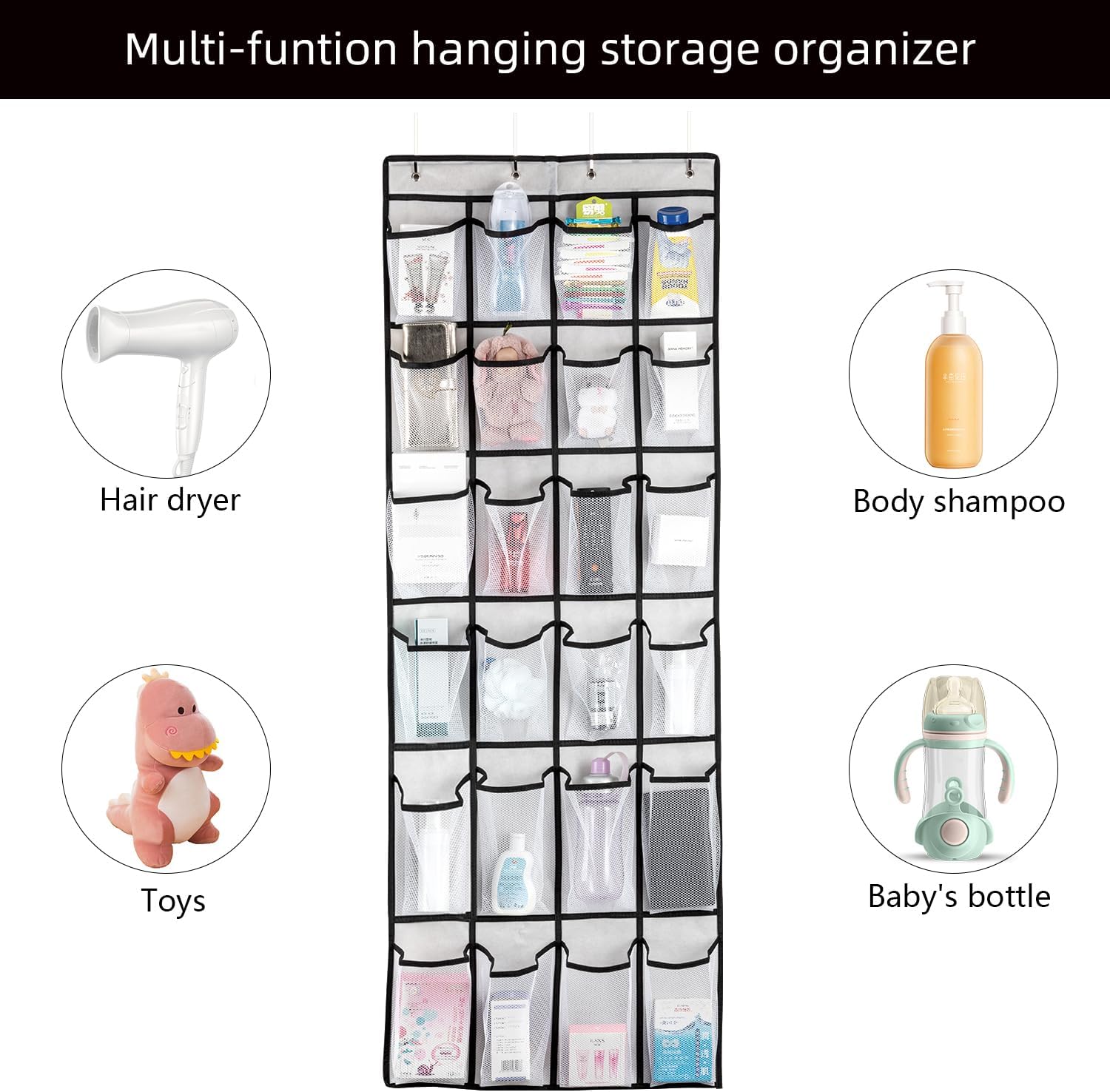 - đăSPACE-SAVING AND EASY TO HANGINGă The door shoe rack organizer is perfect to storage your shoes.In addition to this, the door shoe holder is great for you to store socks, gloves, scarves and even toys, keys, kitchen supplies, toiletry items, cleaning supplies. you can hang it anywhere you want.