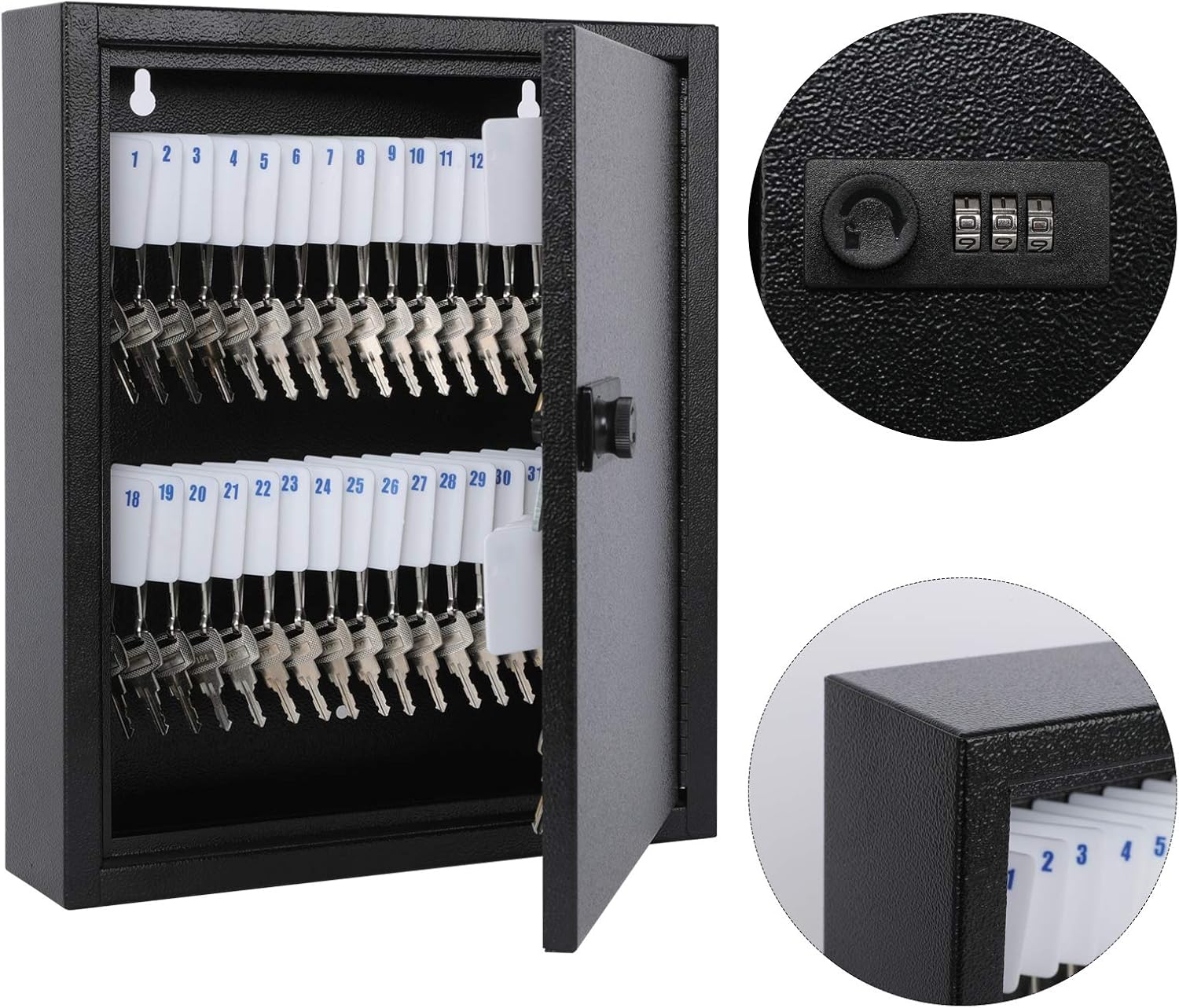 KYODOLED 60-Key Storage Lock Box with Code, Wall Mount Combination Lock Box, Key Hooks & Labels, Black