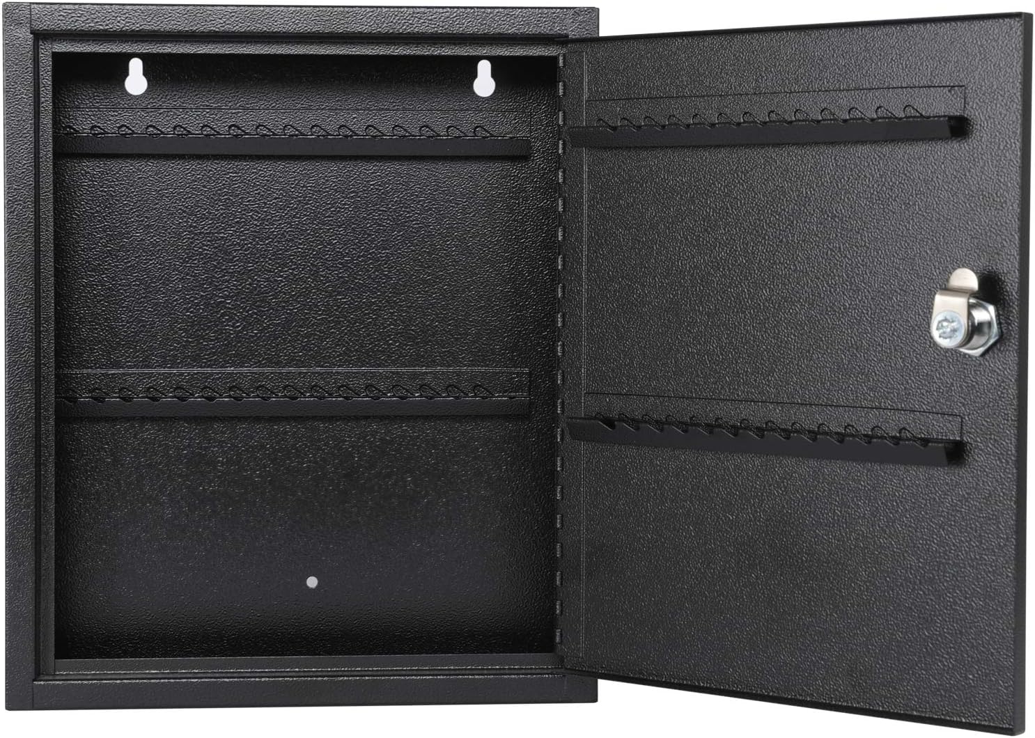 KYODOLED Key Storage Lock Box with Key, Locking Key Cabinet, 60 Key Management Wall Mount with Key Lock, Key Hooks & Tags Key Labels, 2.5" D x 10.2" W x 12.1" H (Black,60 Key)
