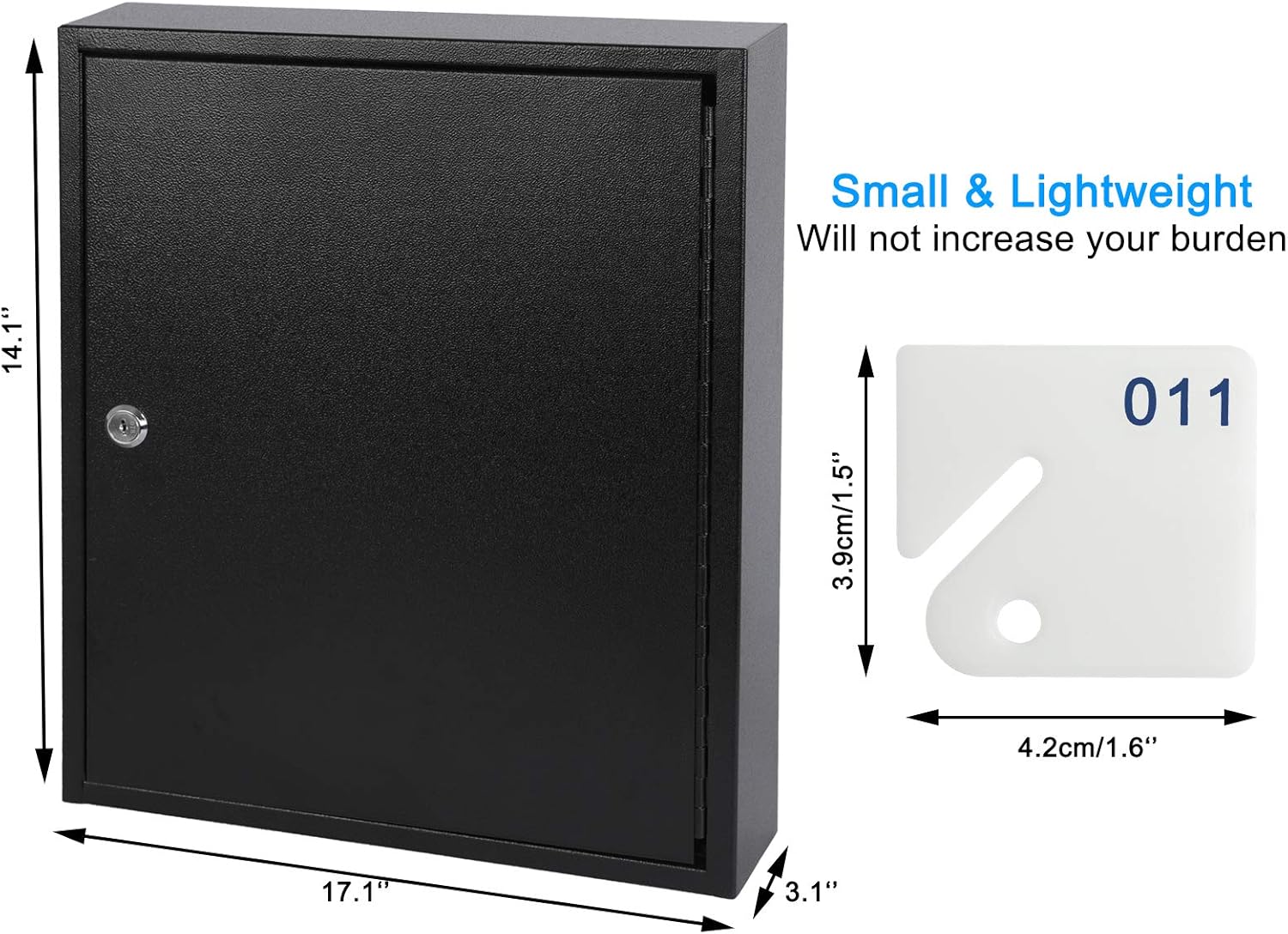 - KEY STORAGE BOX : Keep keys security Key lock box includes 100 key rings, identification tags, and a key labels. Size: 3.1"D x 17.1"W x 14.1"H