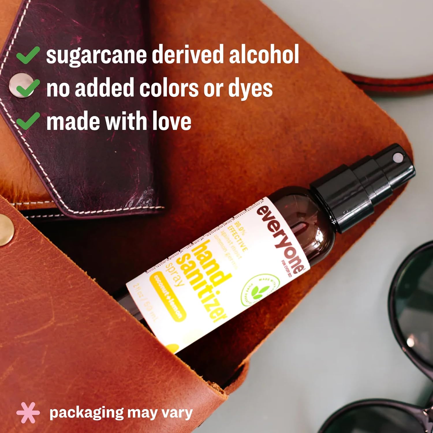 - CONTAINS: (6) 2 Ounce 25% Recycled Plastic Bottle of Everyone Coconut and Lemon Hand Sanitizer Spray