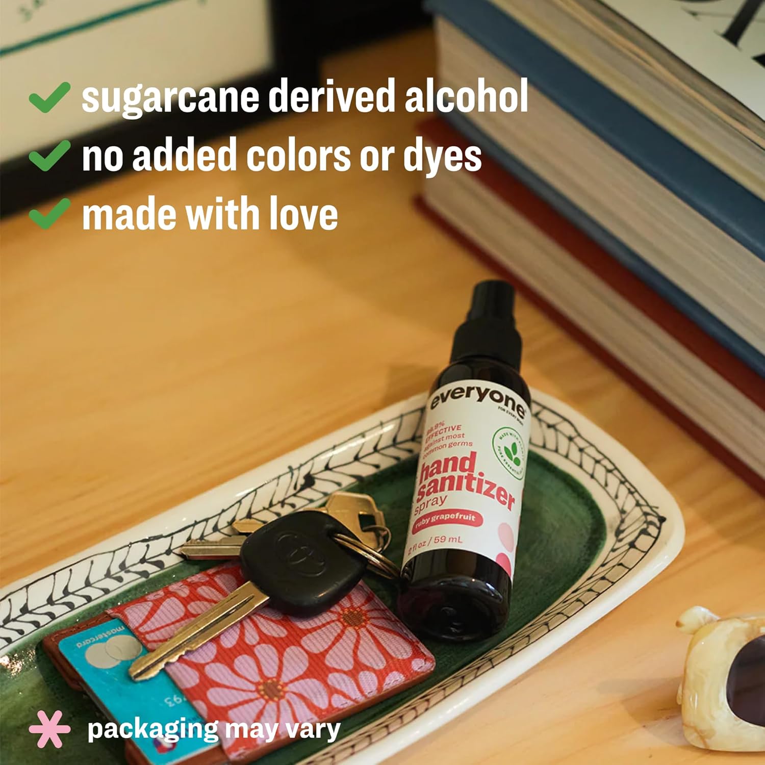 Everyone Hand Sanitizer Spray, 2 Fl Oz (Pack of 6), Ruby Grapefruit, Sugar Cane Alcohol with Essential Oils, 99% Effective Against Germs TSA friendly